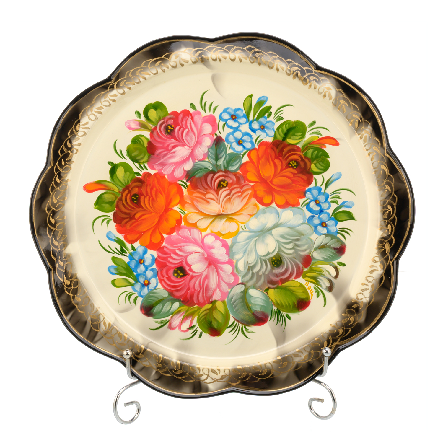 Поднос с авторской росписью "Цветы".Материалы: сталь, краски, лак.