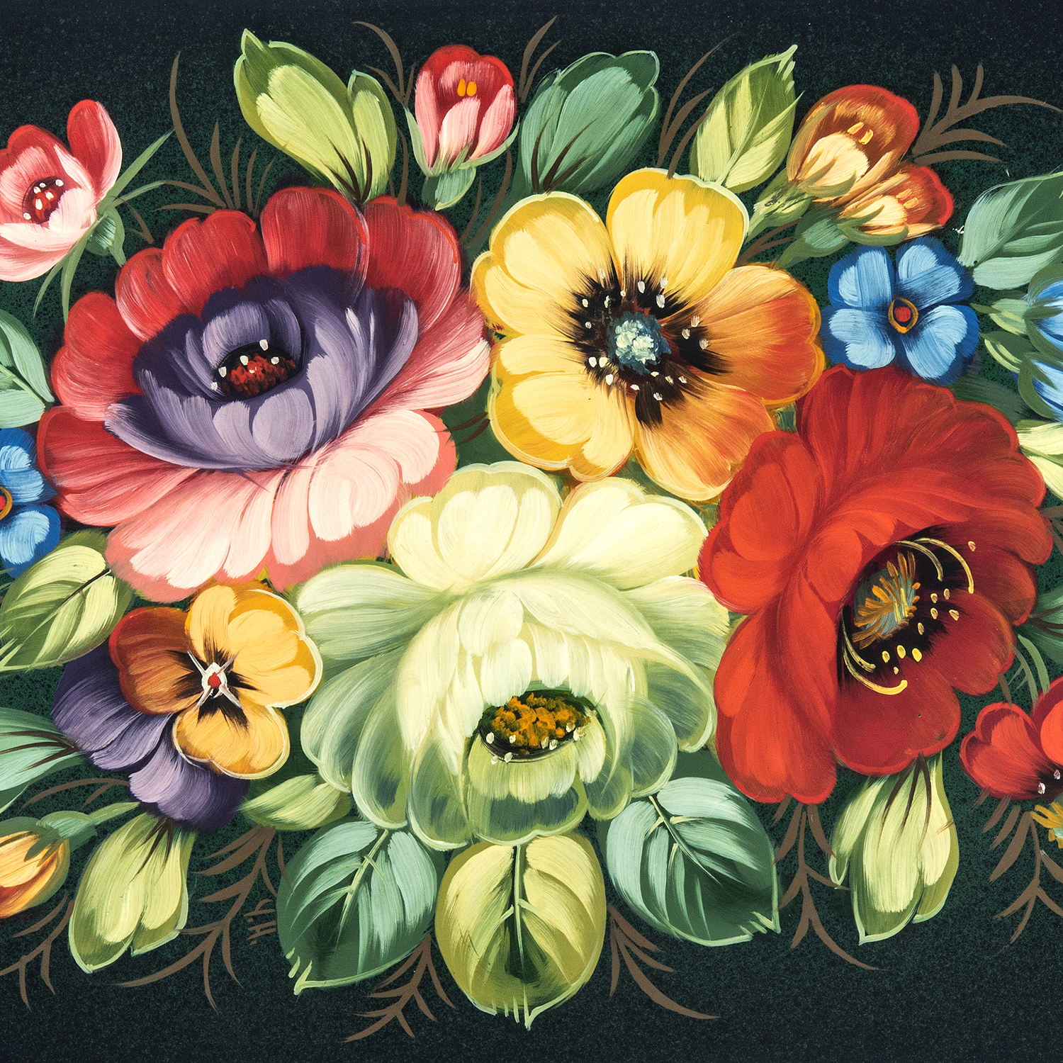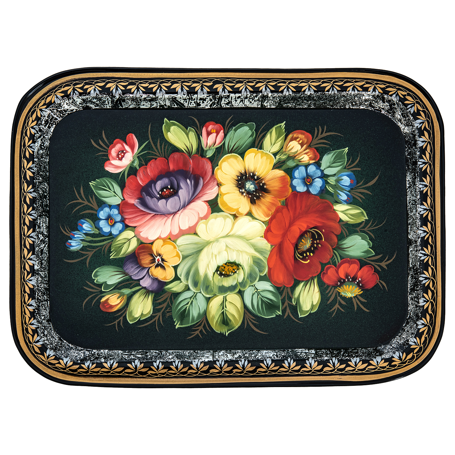 Поднос с авторской росписью "Цветы" 36х26 см