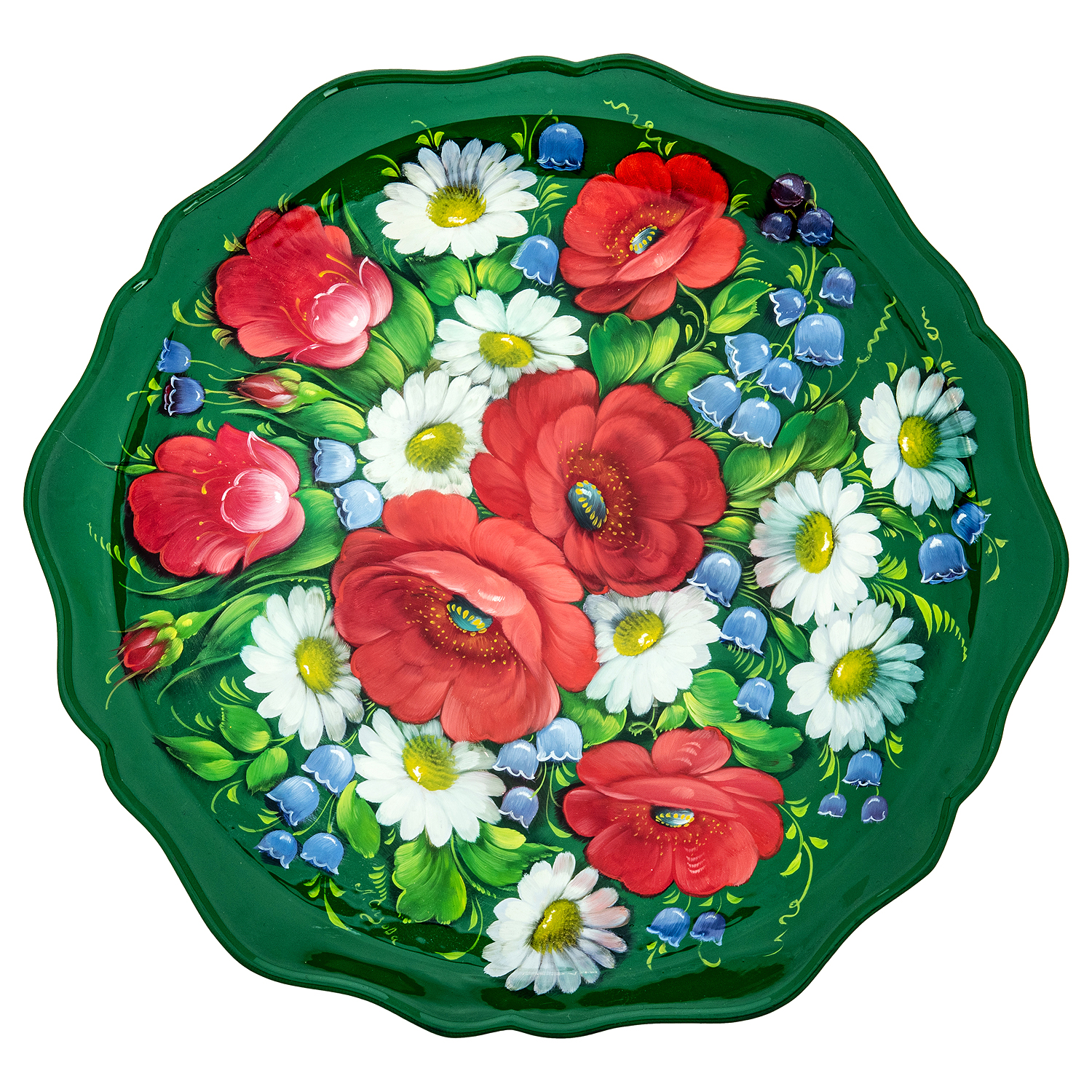 Поднос с авторской росписью "Цветы".Материалы: сталь, краски, лак.