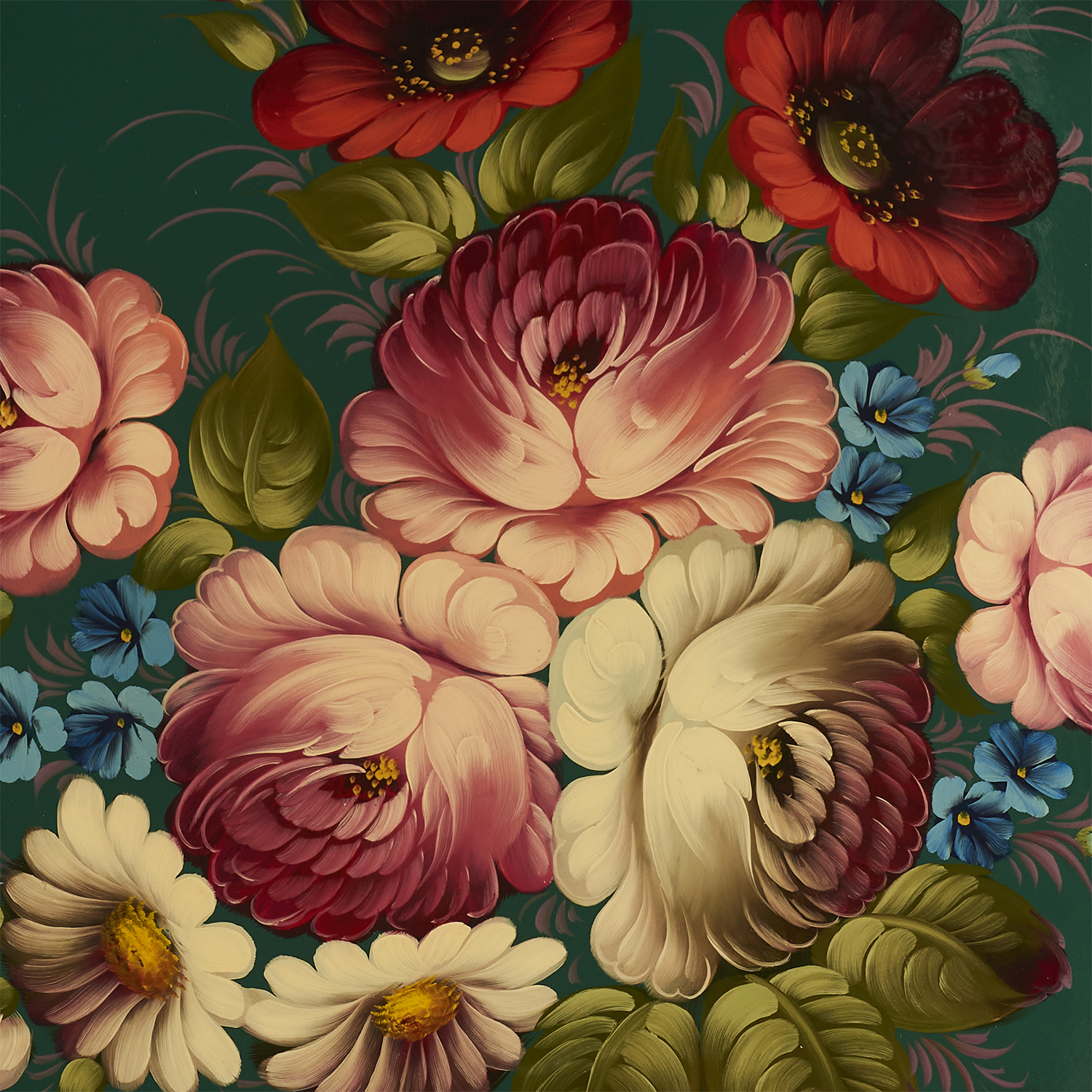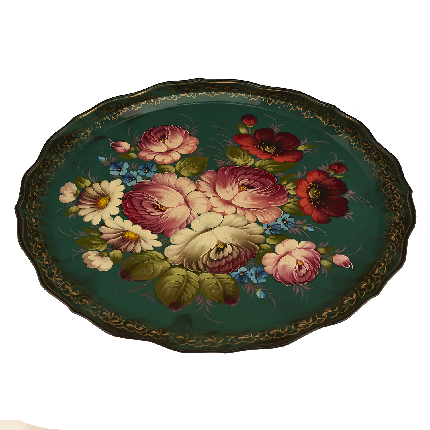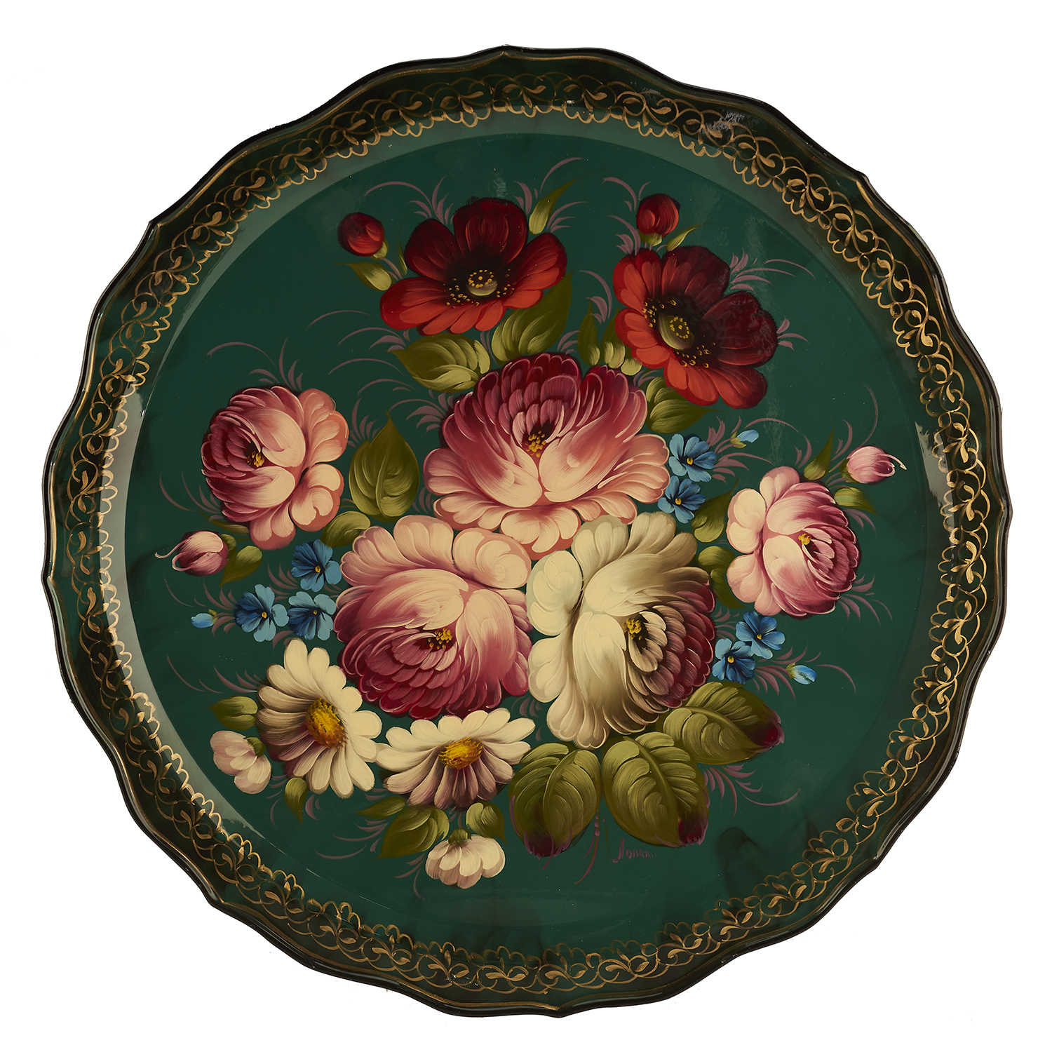 Поднос с авторской росписью "Цветы".Материалы: сталь, краски, лак.