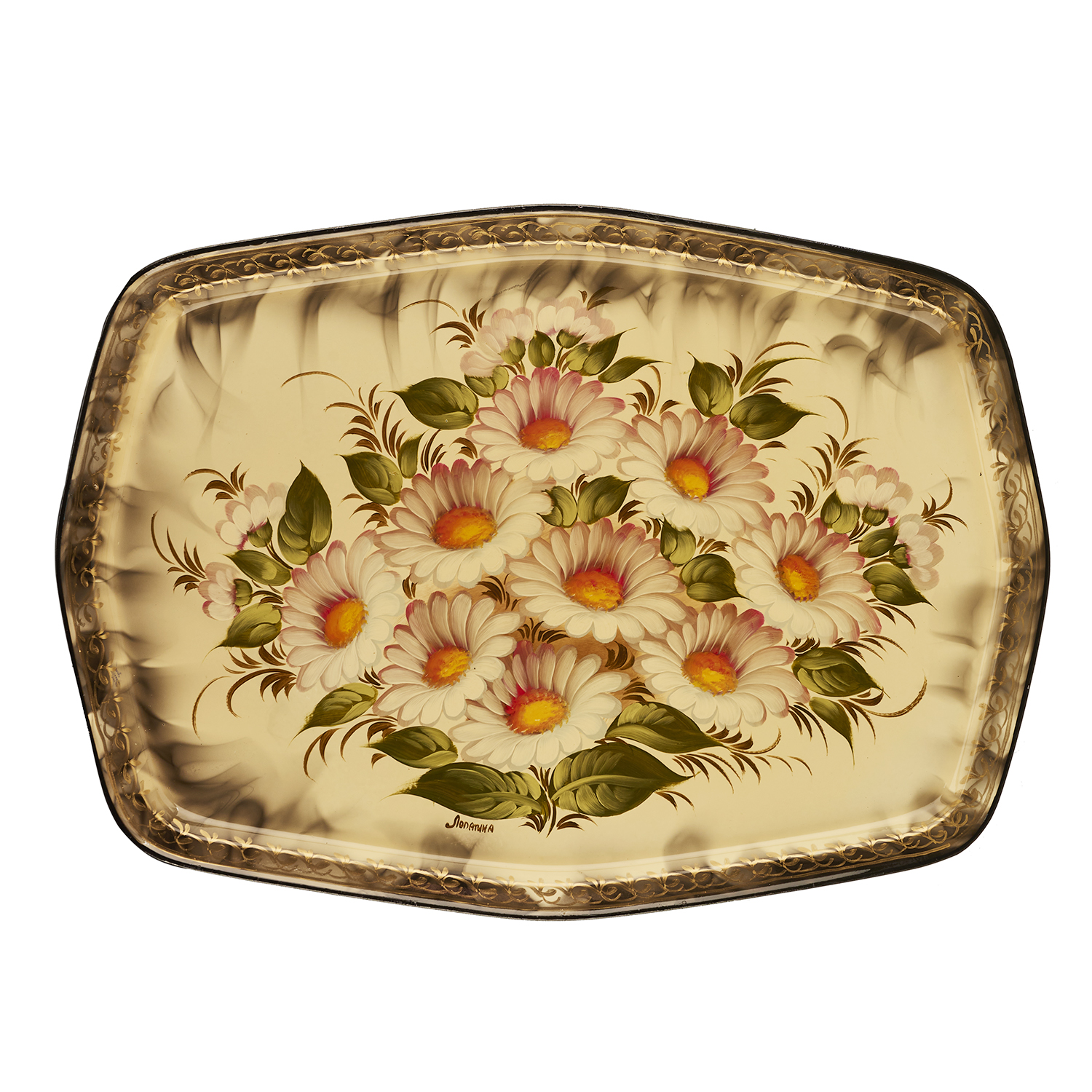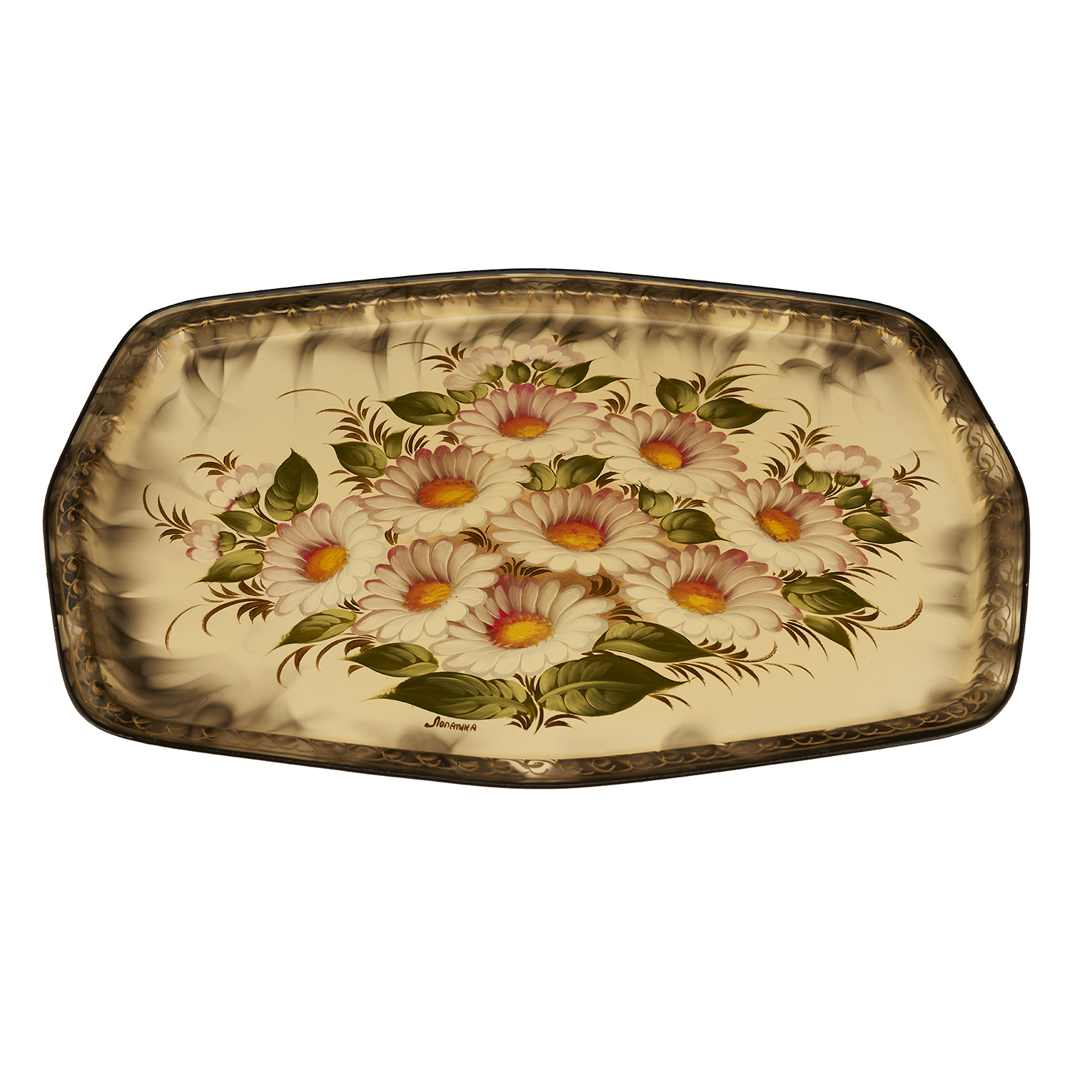 Поднос с авторской росписью "Ромашки".Материалы: сталь, краски, лак.