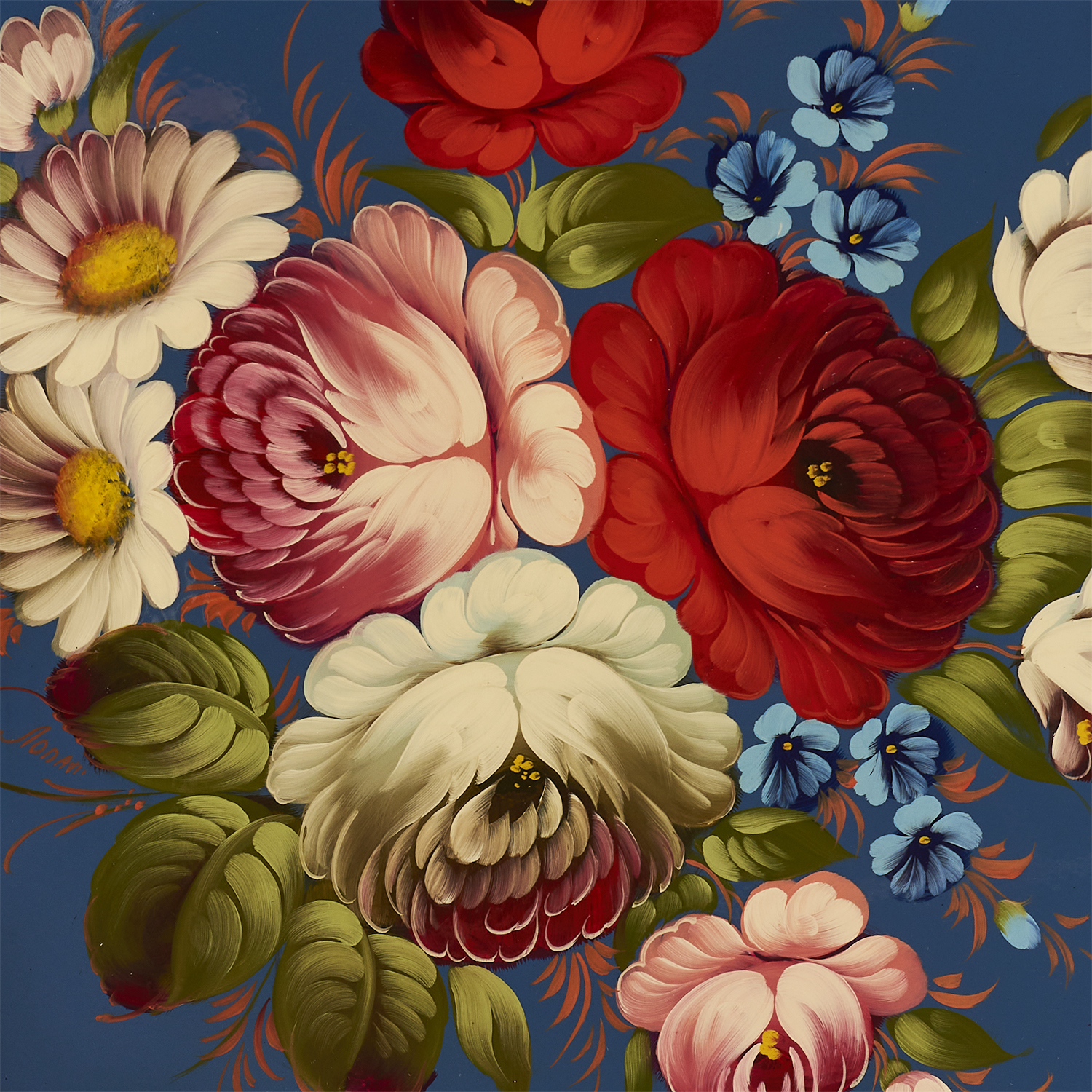 Поднос с авторской росписью "Цветы" 42х42 см
