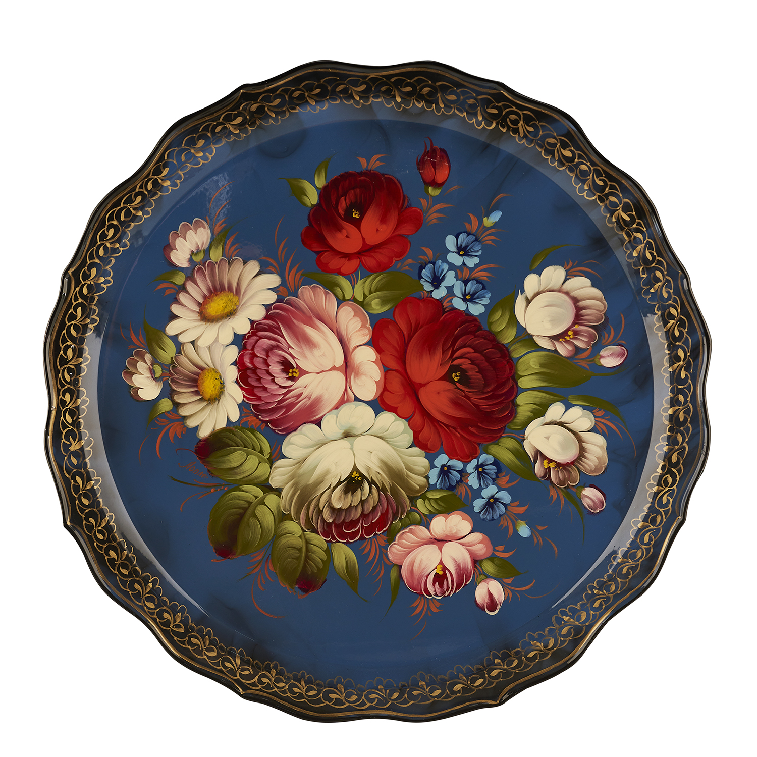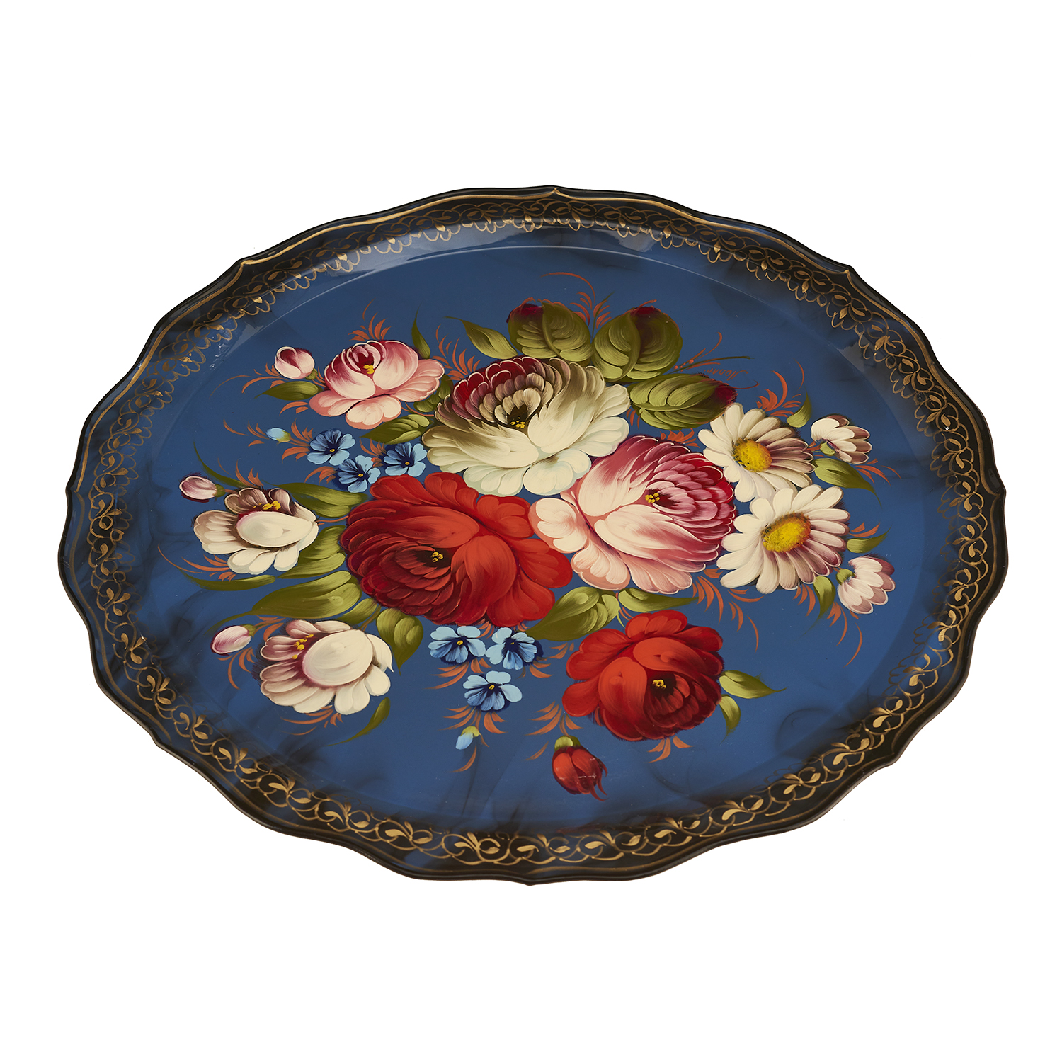 Поднос с авторской росписью "Цветы".Материалы: сталь, краски, лак.