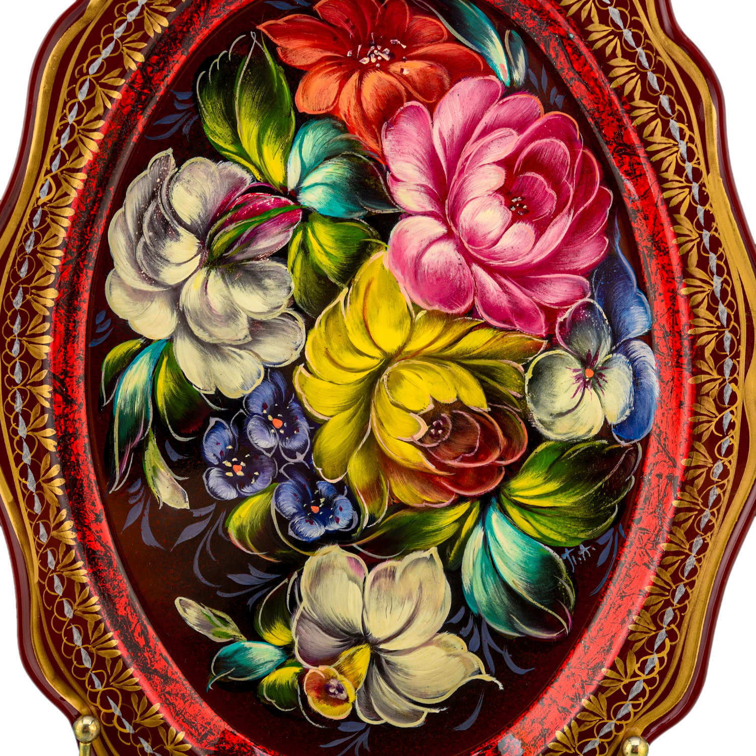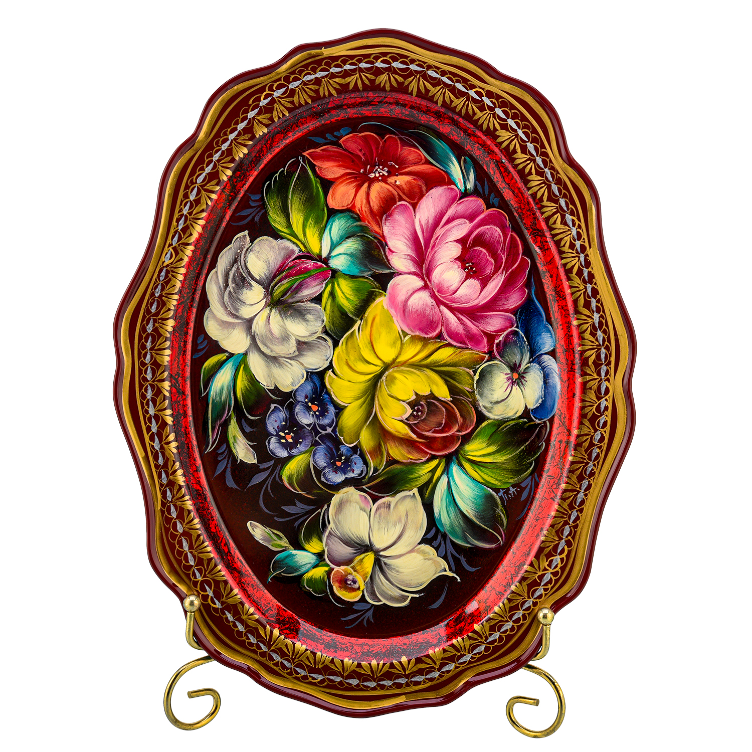 Поднос с авторской росписью.Материалы: сталь, краски, лак.