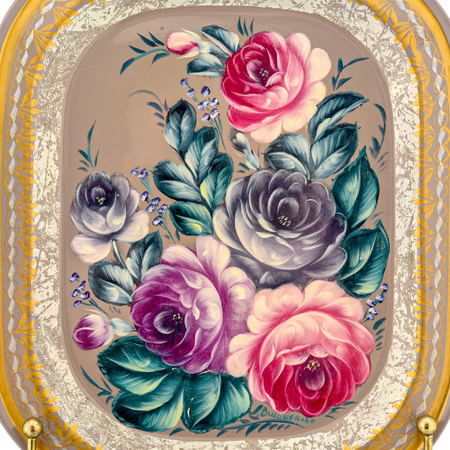 Поднос с авторской росписью.Материалы: сталь, краски, лак.