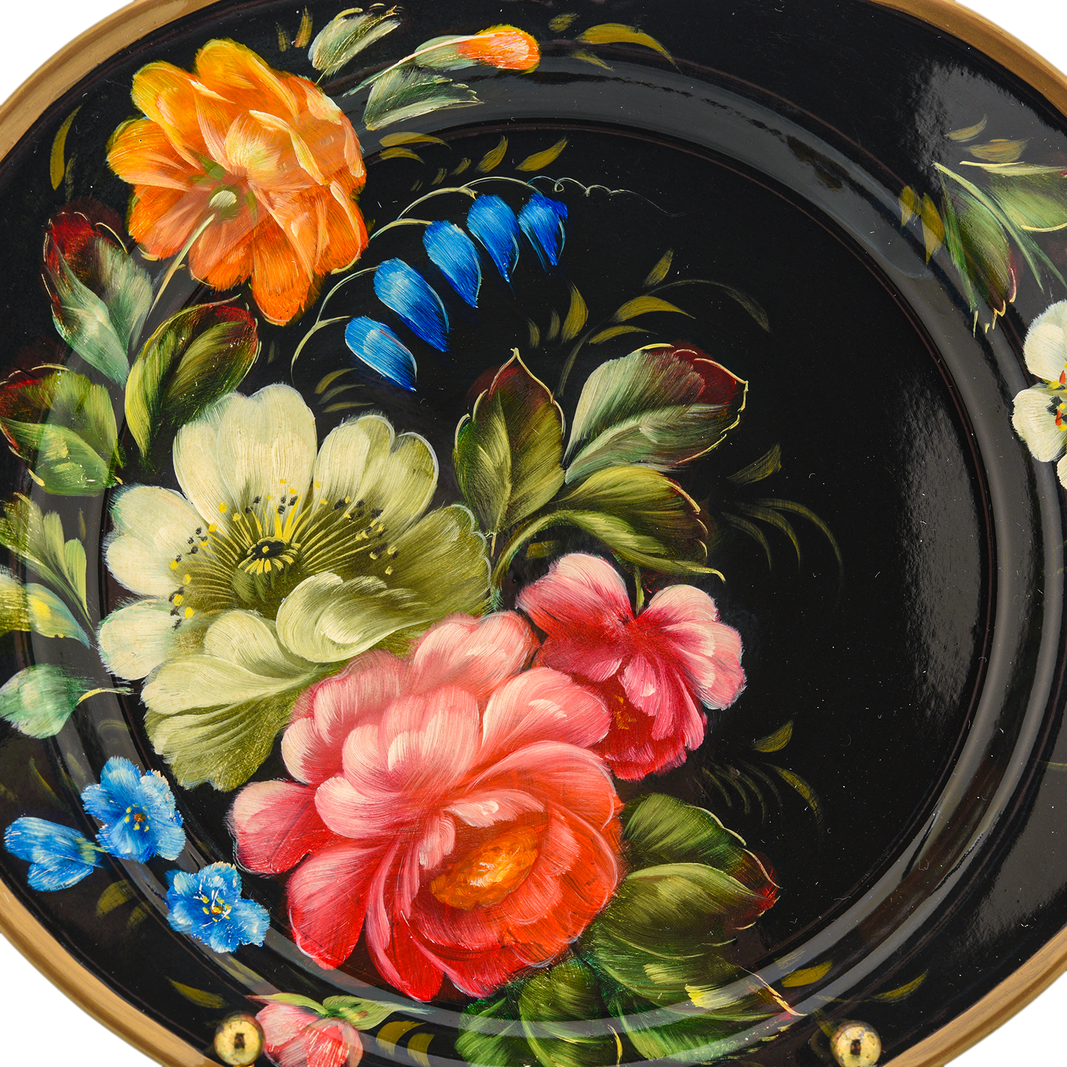 Поднос с авторской росписью.Материалы: сталь, краски, лак.
