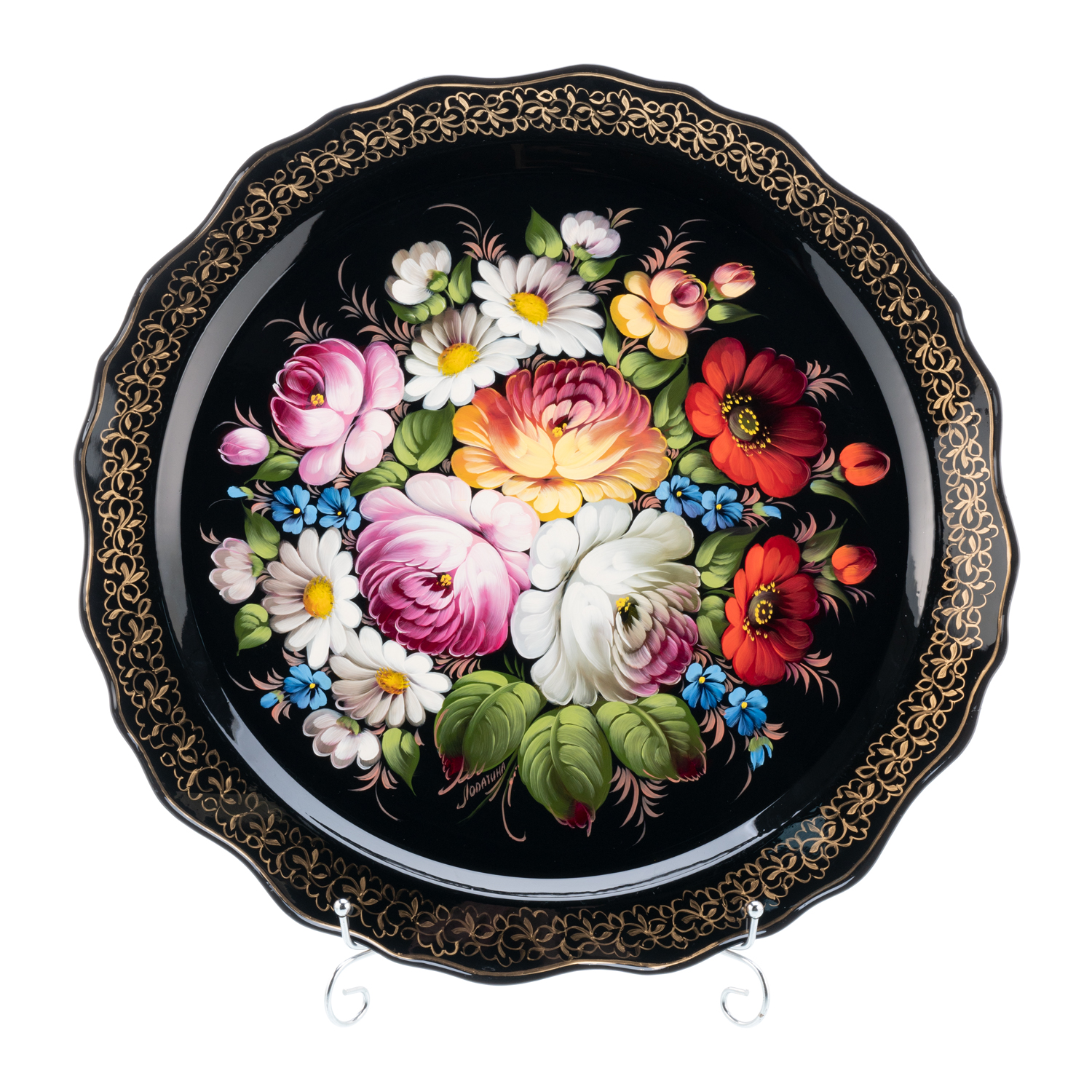 Поднос с авторской росписью "Цветы".