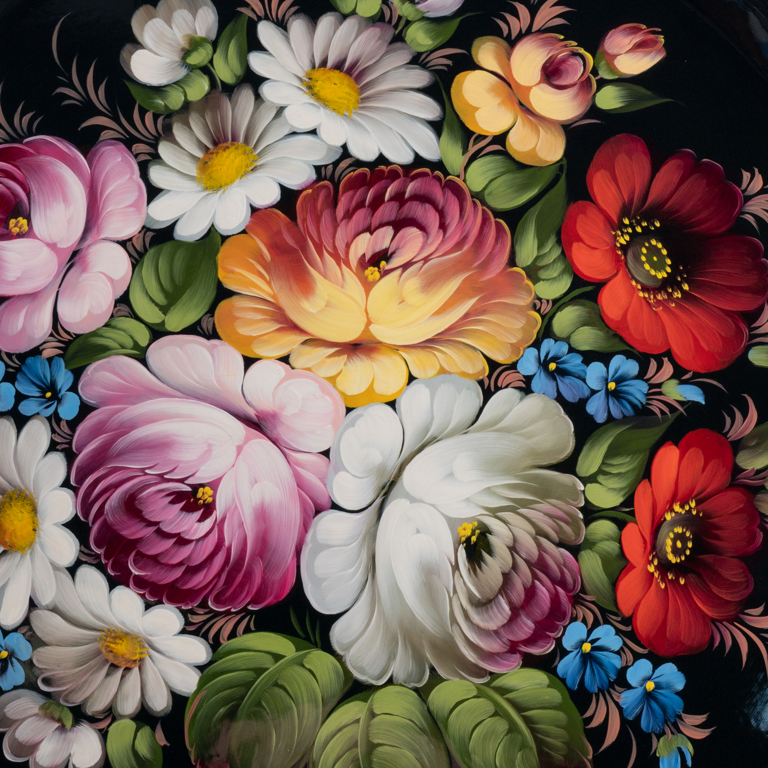 Поднос с авторской росписью "Цветы" 44х44 см