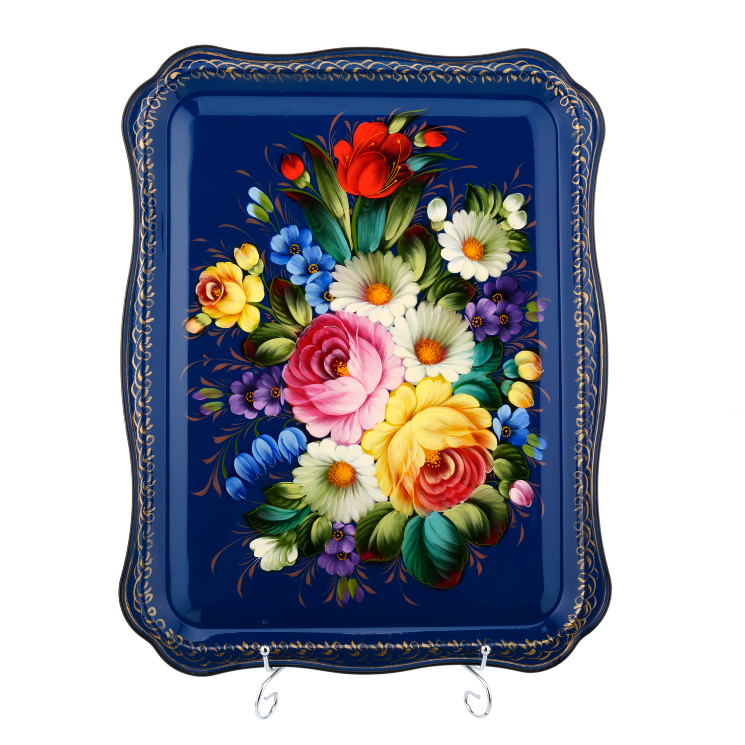 Русские подарки и сувениры → Посуда → Подносы → Поднос сувенирный с ручной росписью "Цветы" 45х35 см