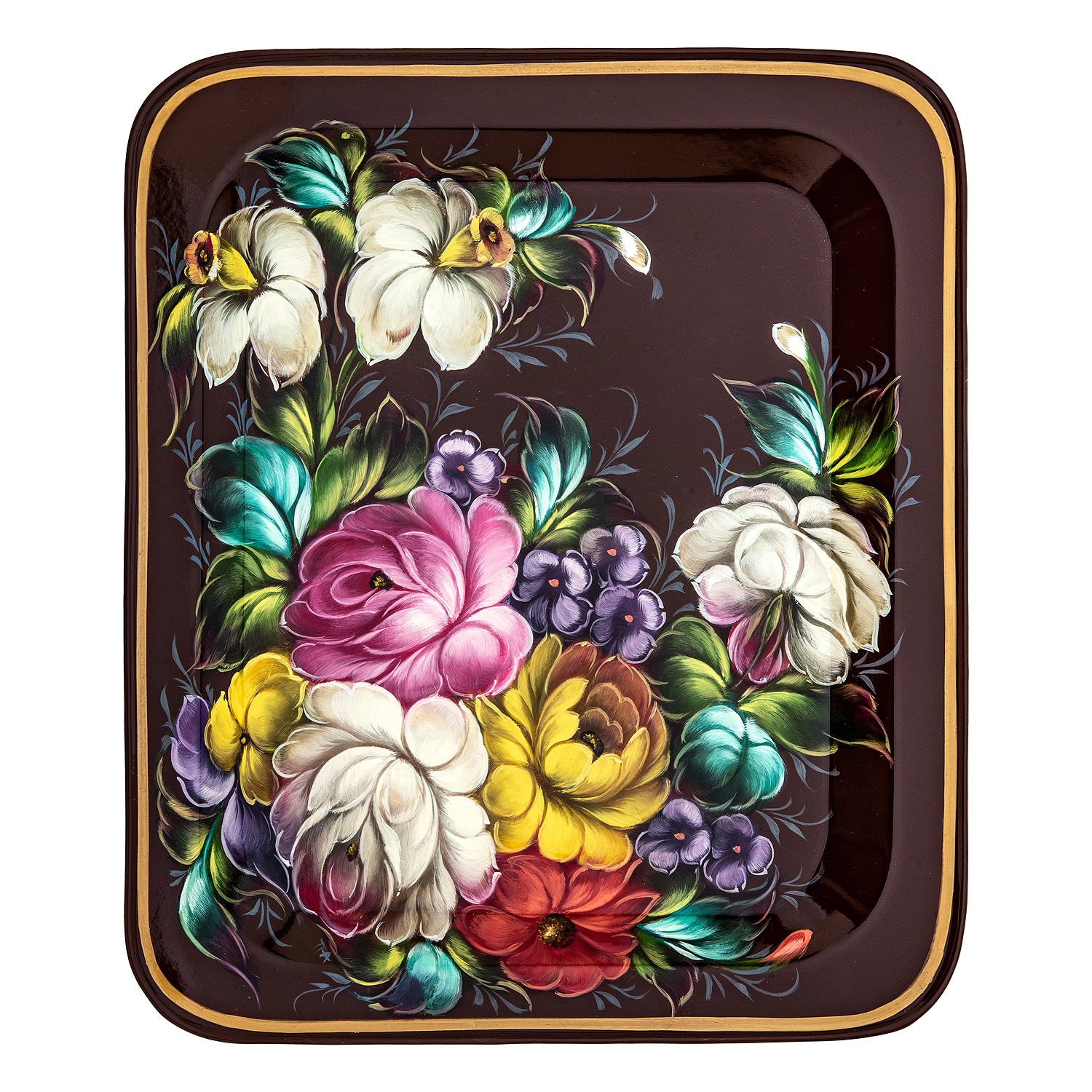 Поднос с авторской росписью "Цветы".