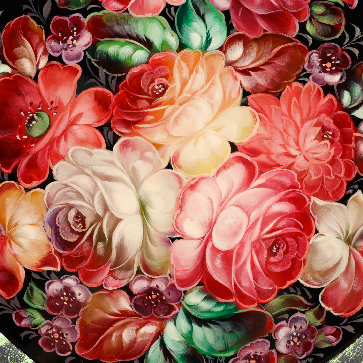 Поднос с авторской росписью "Цветы" 34х34 см