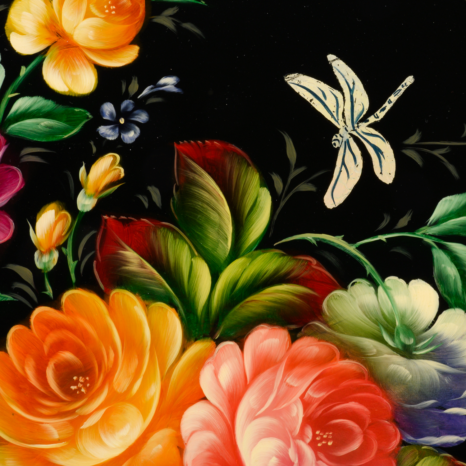 Поднос с авторской росписью "Цветы" 34х34 см