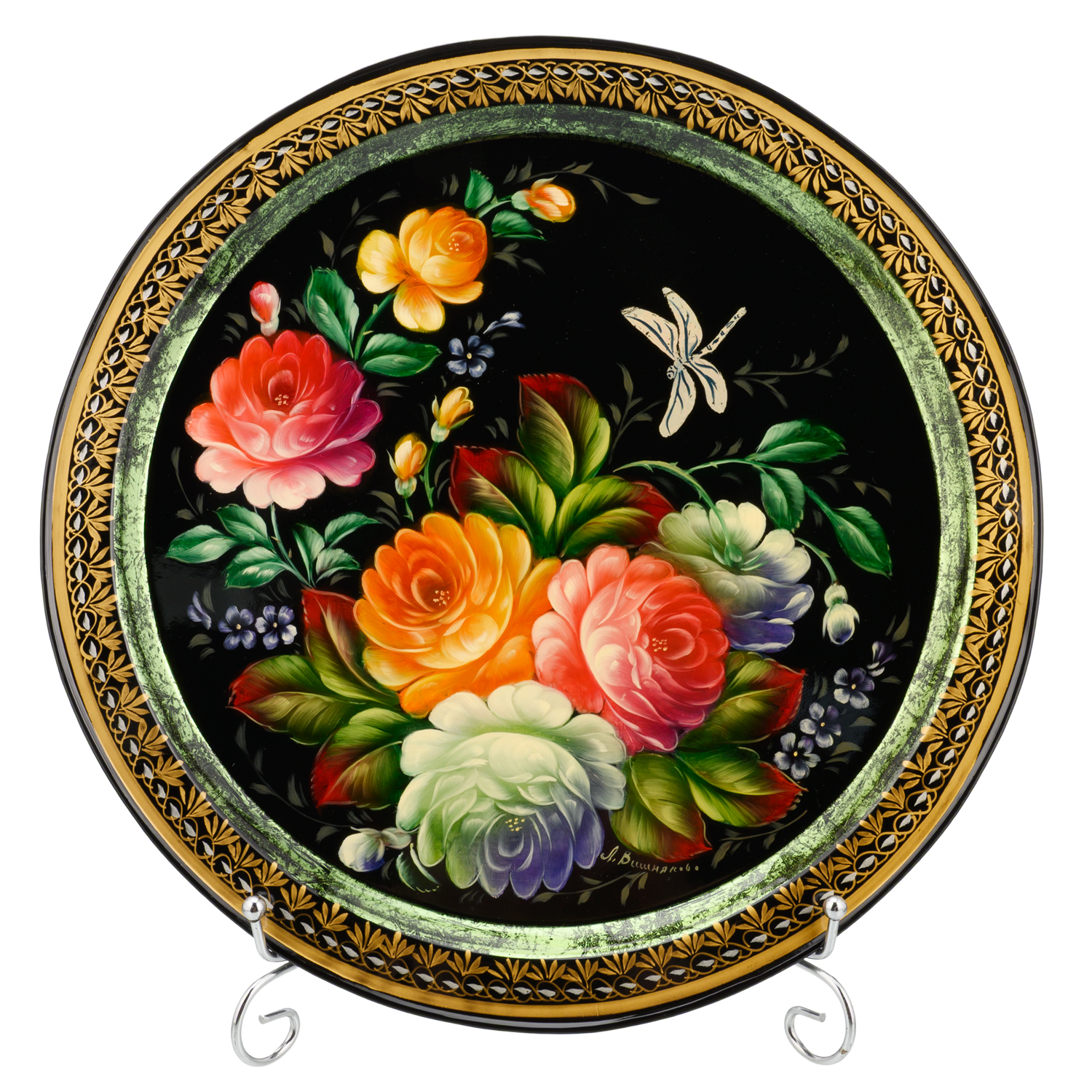 Поднос с авторской росписью "Цветы".Материалы: сталь, краски, лак.