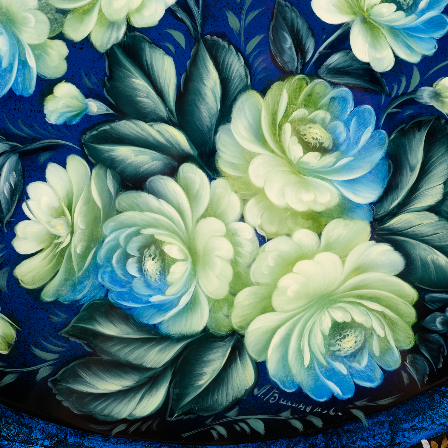 Поднос с авторской росписью "Цветы".Материалы: сталь, краски, лак.