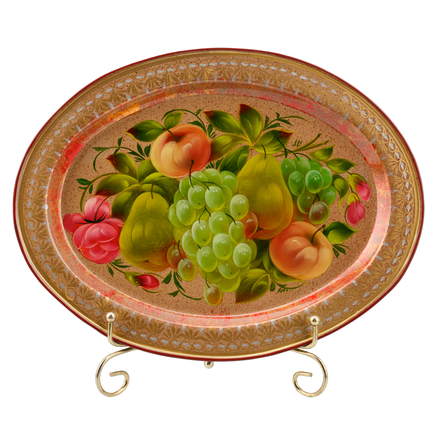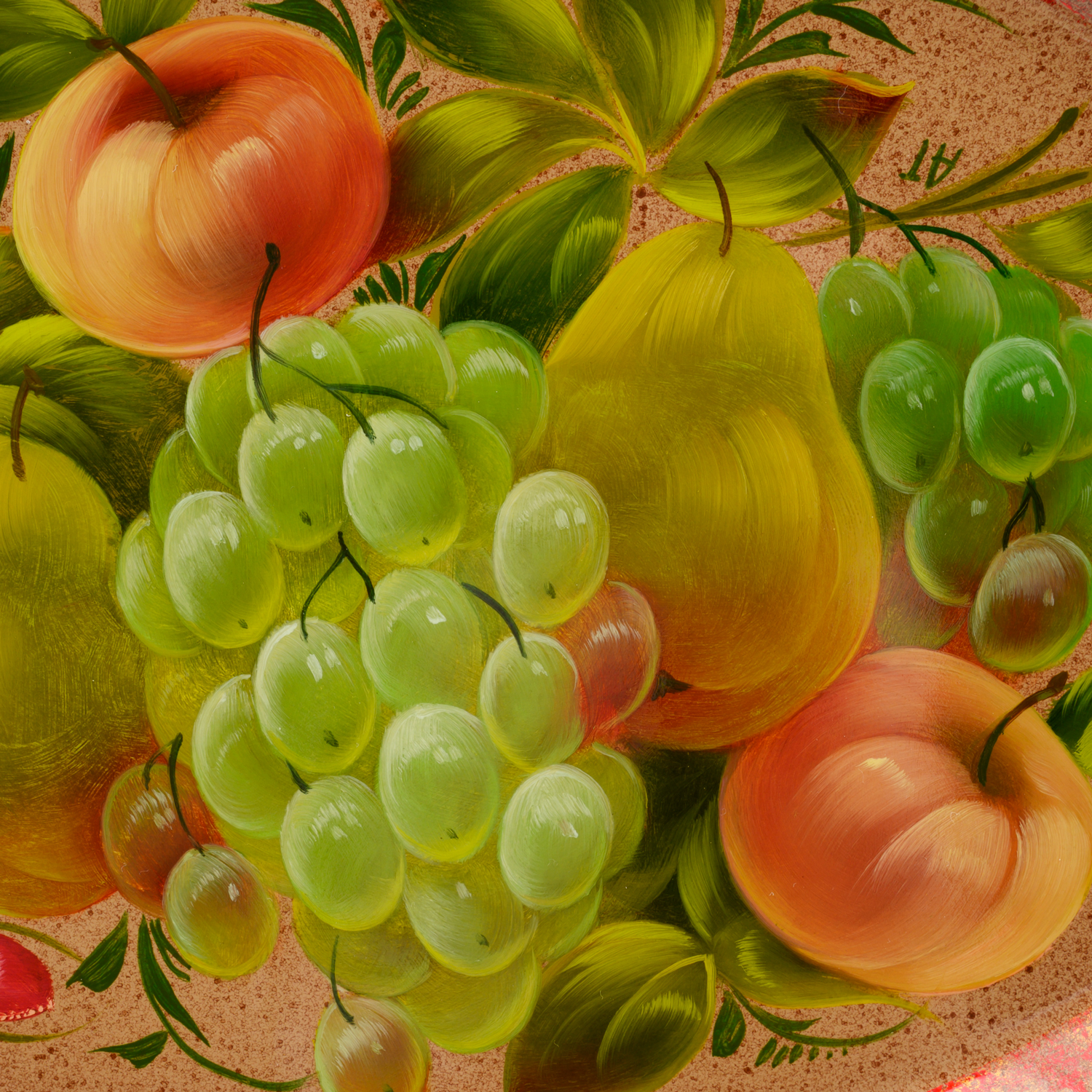 Поднос с авторской росписью "Фрукты".Материалы: сталь, краски, лак.