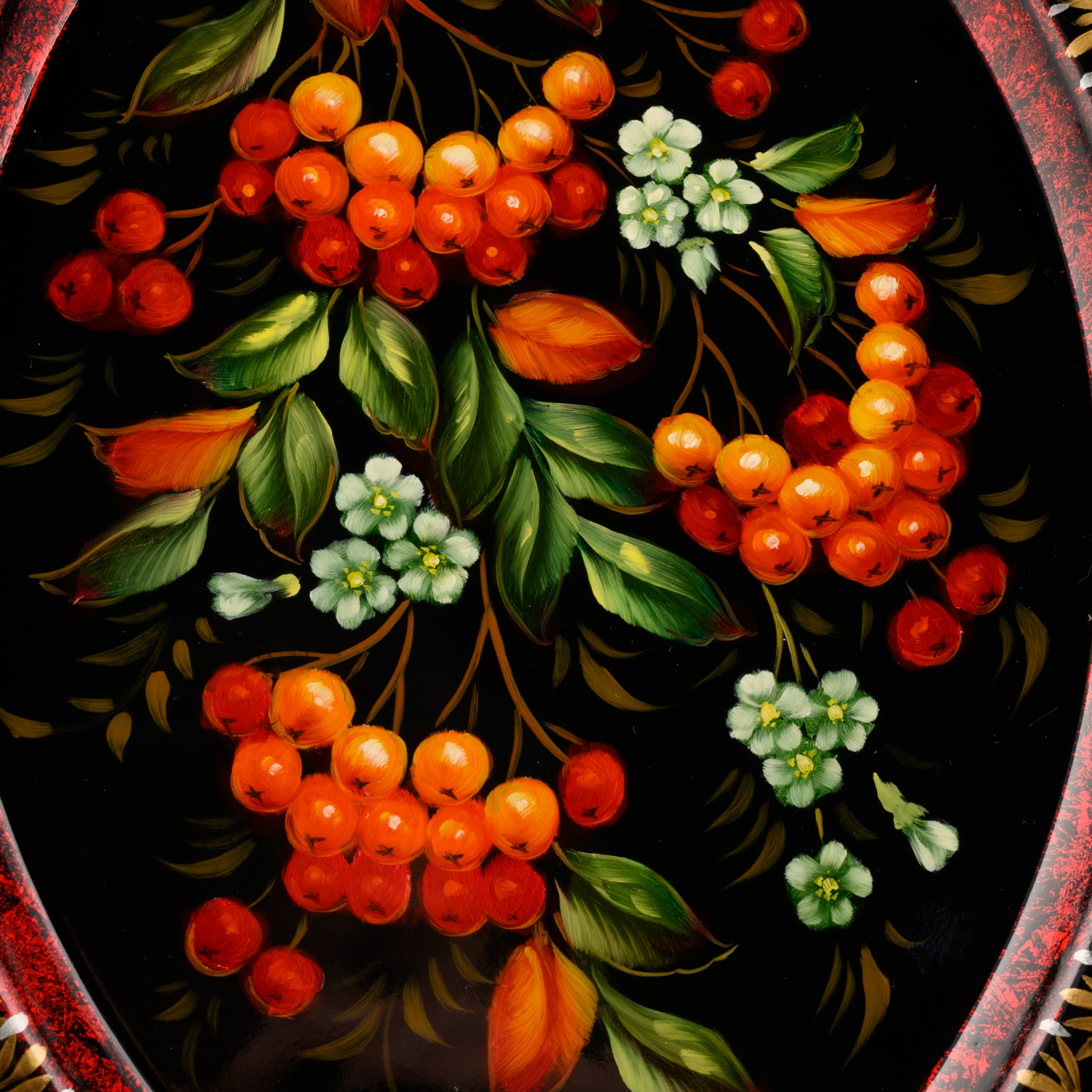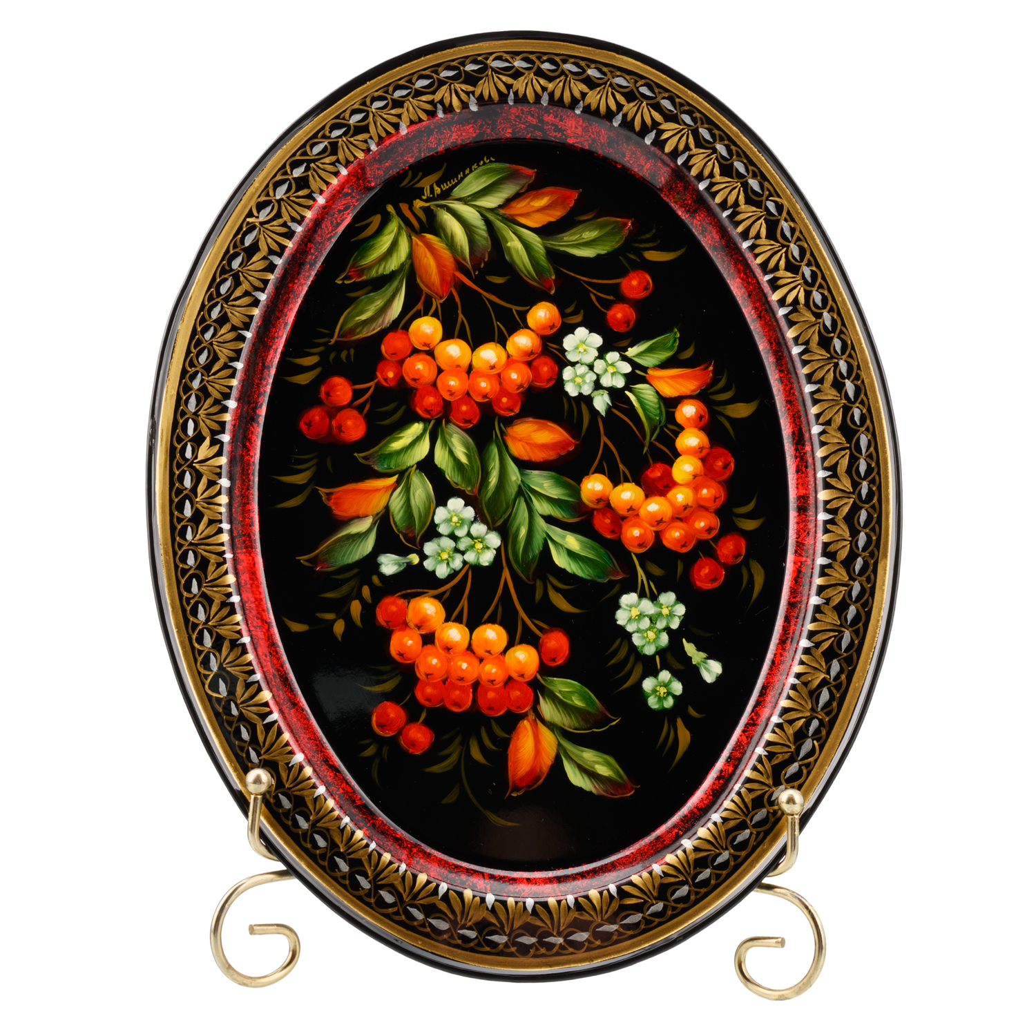Поднос с авторской росписью "Рябина".Материалы: сталь, краски, лак.