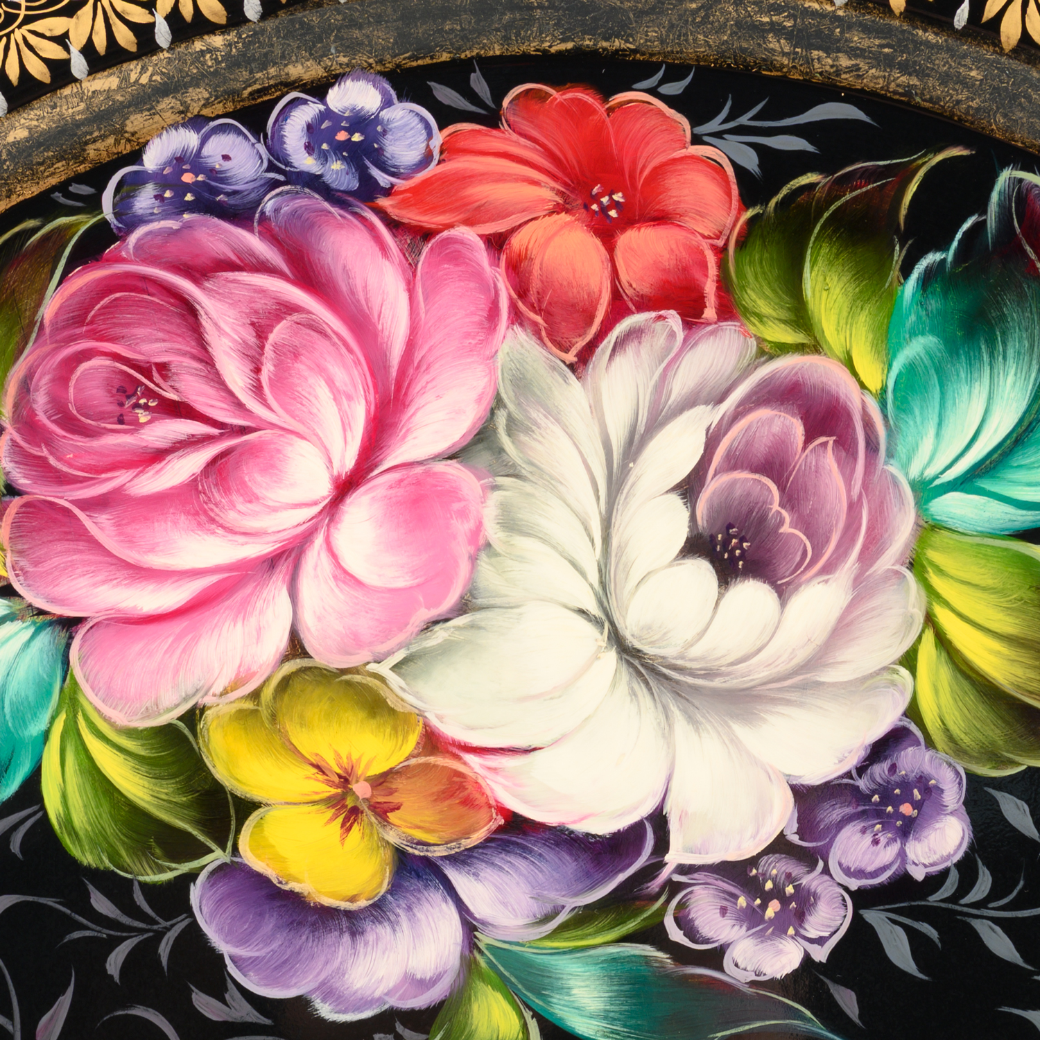 Поднос с авторской росписью "Цветы".Материалы: сталь, краски, лак.