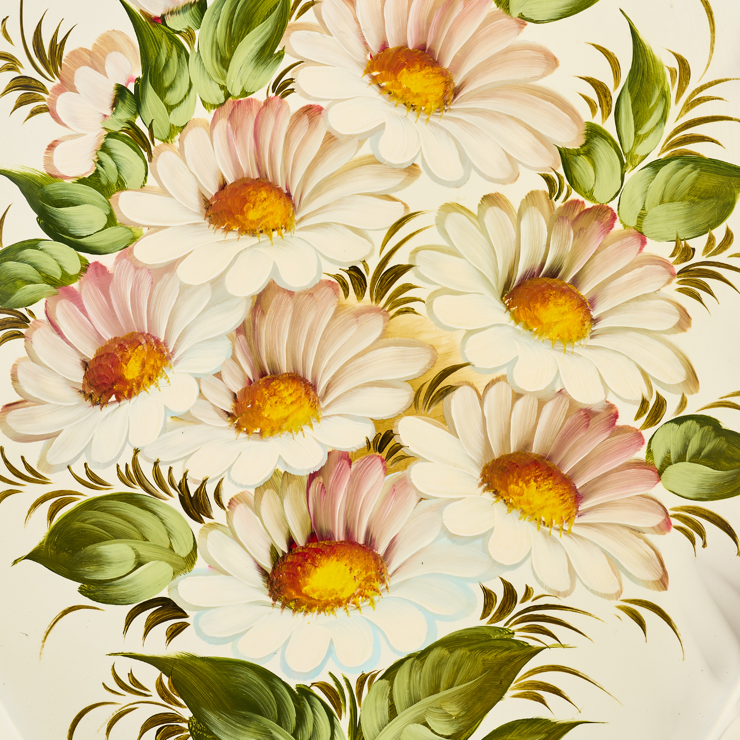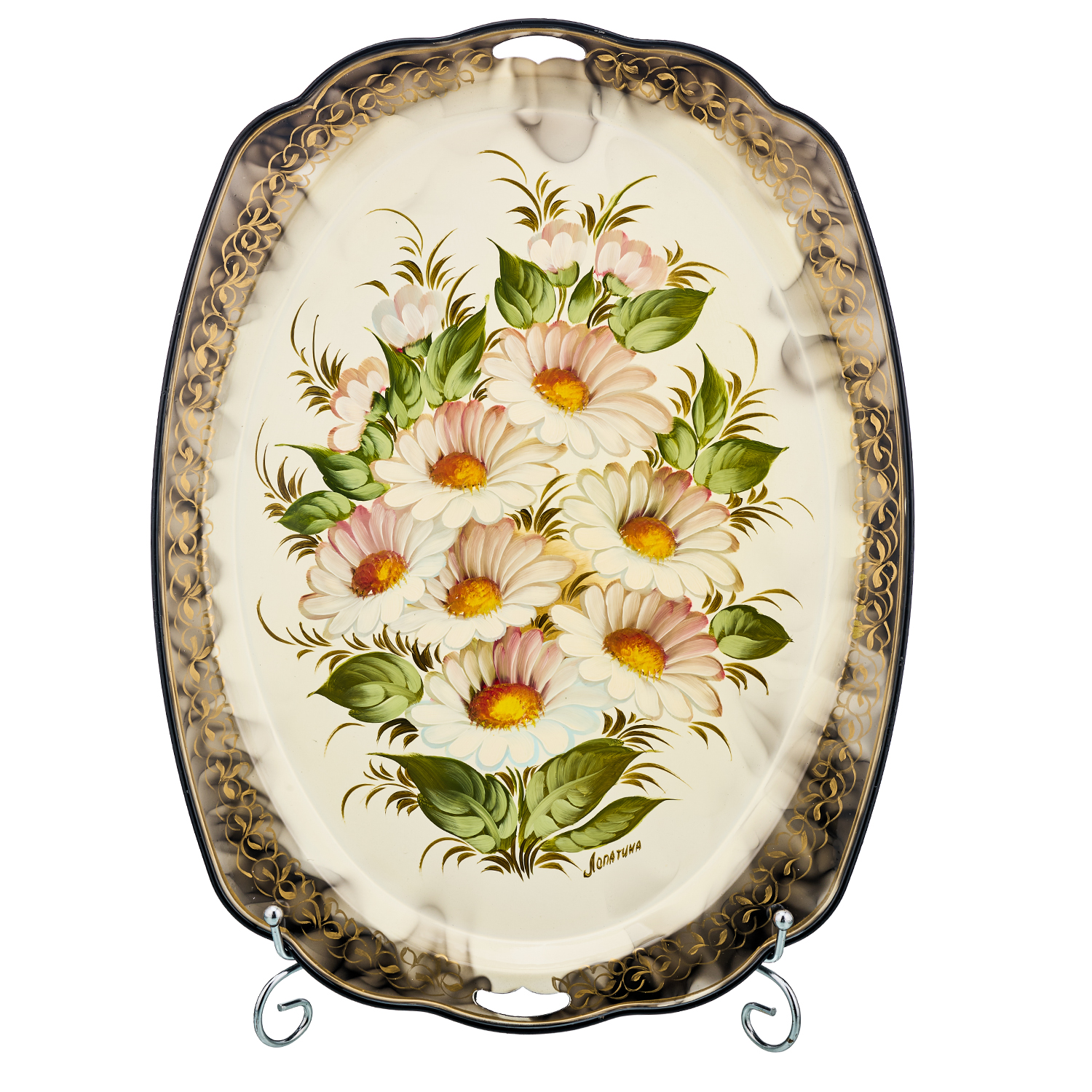 Поднос с авторской росписью "Ромашки".Материалы: сталь, краски, лак.