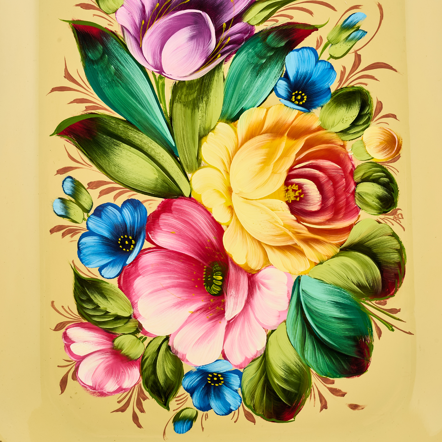 Поднос с авторской росписью "Цветы".Материалы: сталь, краски, лак.