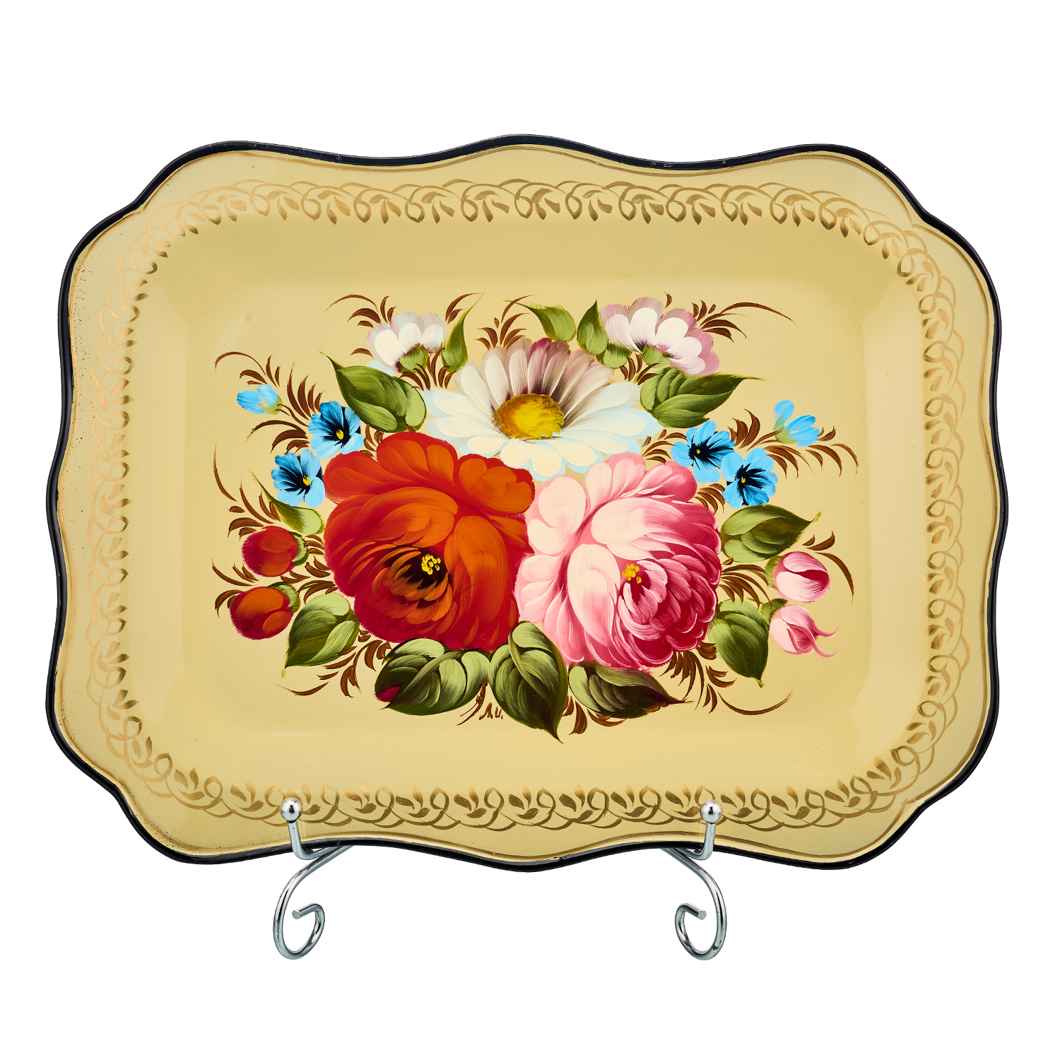 Поднос с авторской росписью "Цветы".Материалы: сталь, краски, лак.