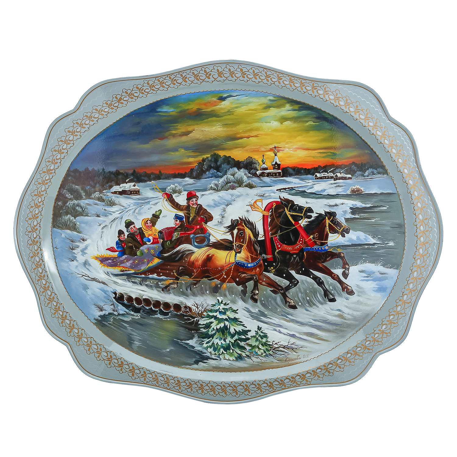 Поднос расписной "Тройка" 48 х 60 см