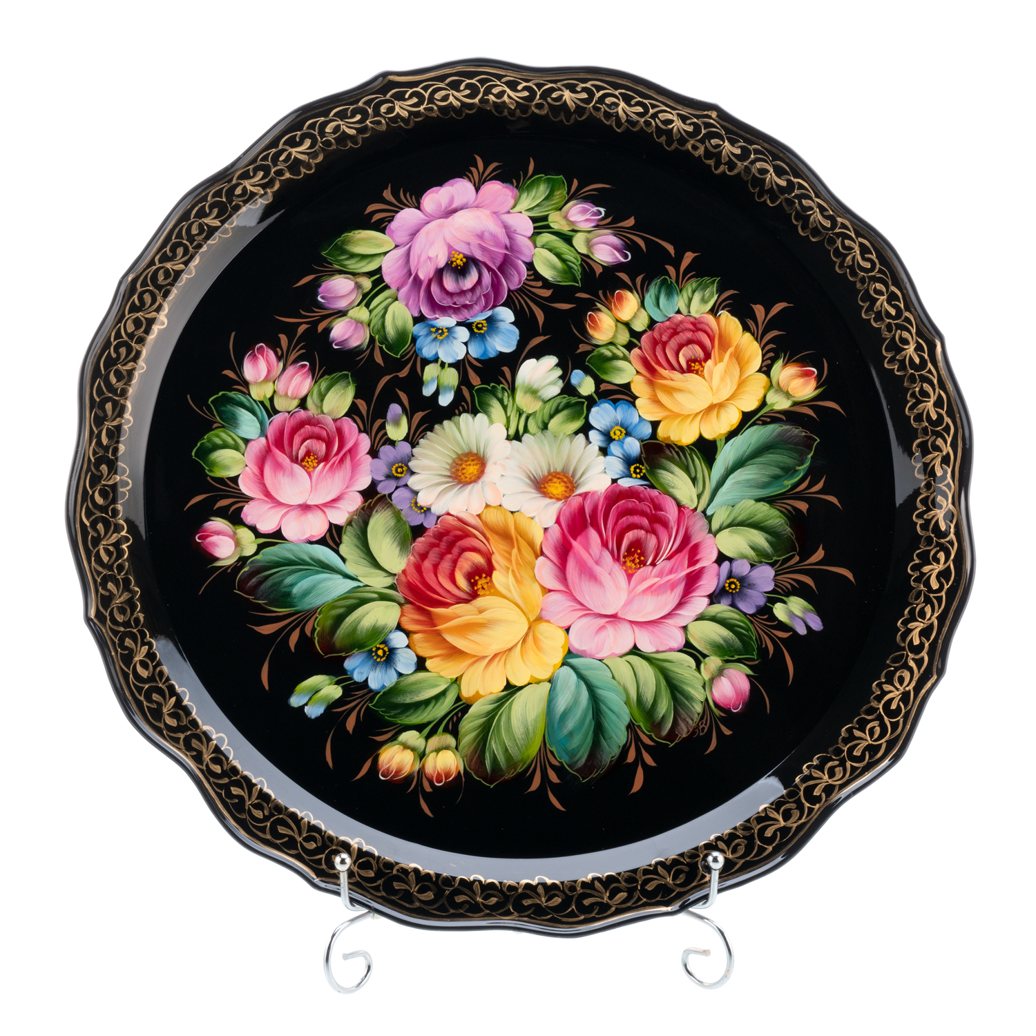 Поднос с авторской росписью "Цветы".Материалы: сталь, краски, лак.