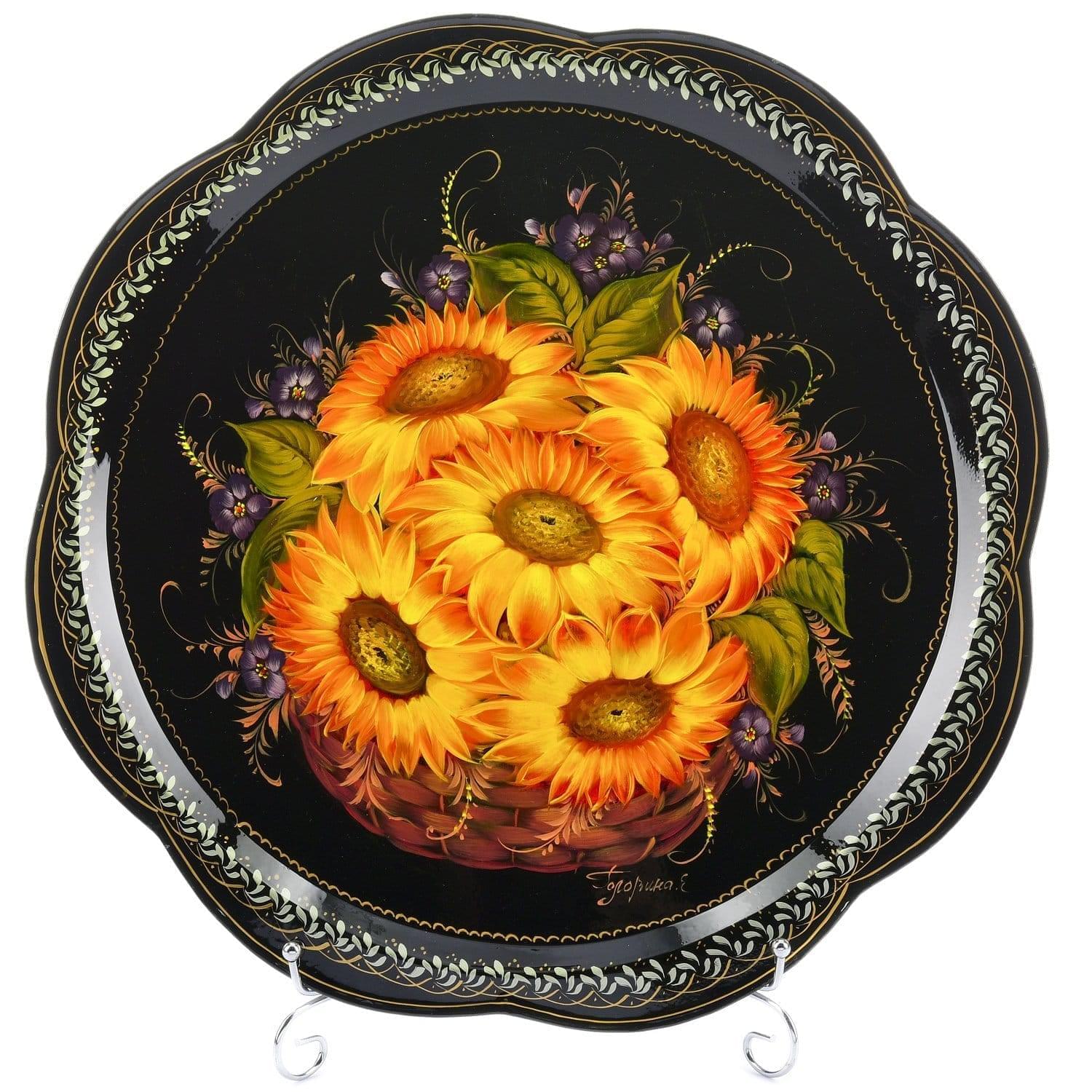Поднос расписной "Подсолнухи" черный 42 см