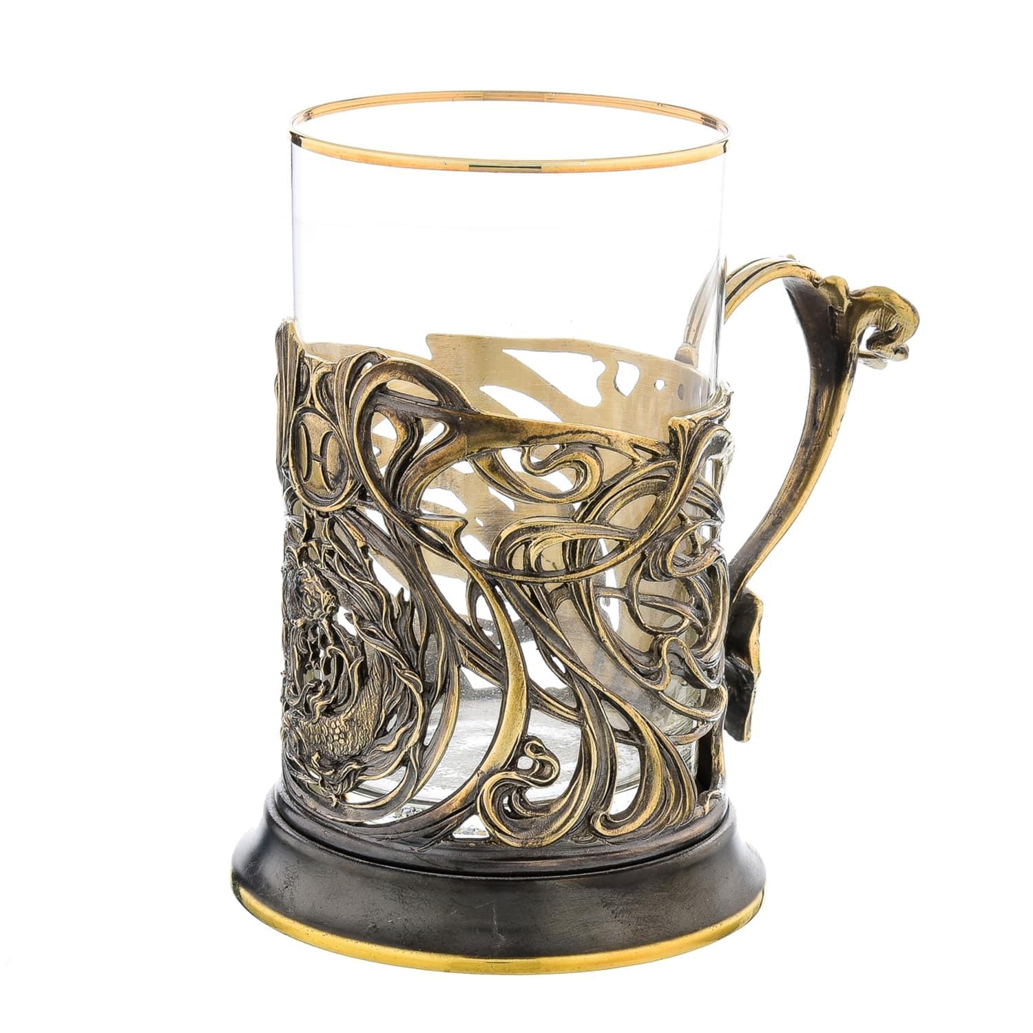 Подстаканник - это предмет обихода в русском стиле из металла и стекла оригинального дизайна, известный с 19 века. Это наш бестселлер - дизайнерский питейный сосуд в русском стиле, который предназначен для горячих и холодных напитков. Подстаканники получили распространение во времена активной государственной деятельности министра Витте. Этот подстаканник сделан специально для рожденного под знаком зодиака Рыбы.