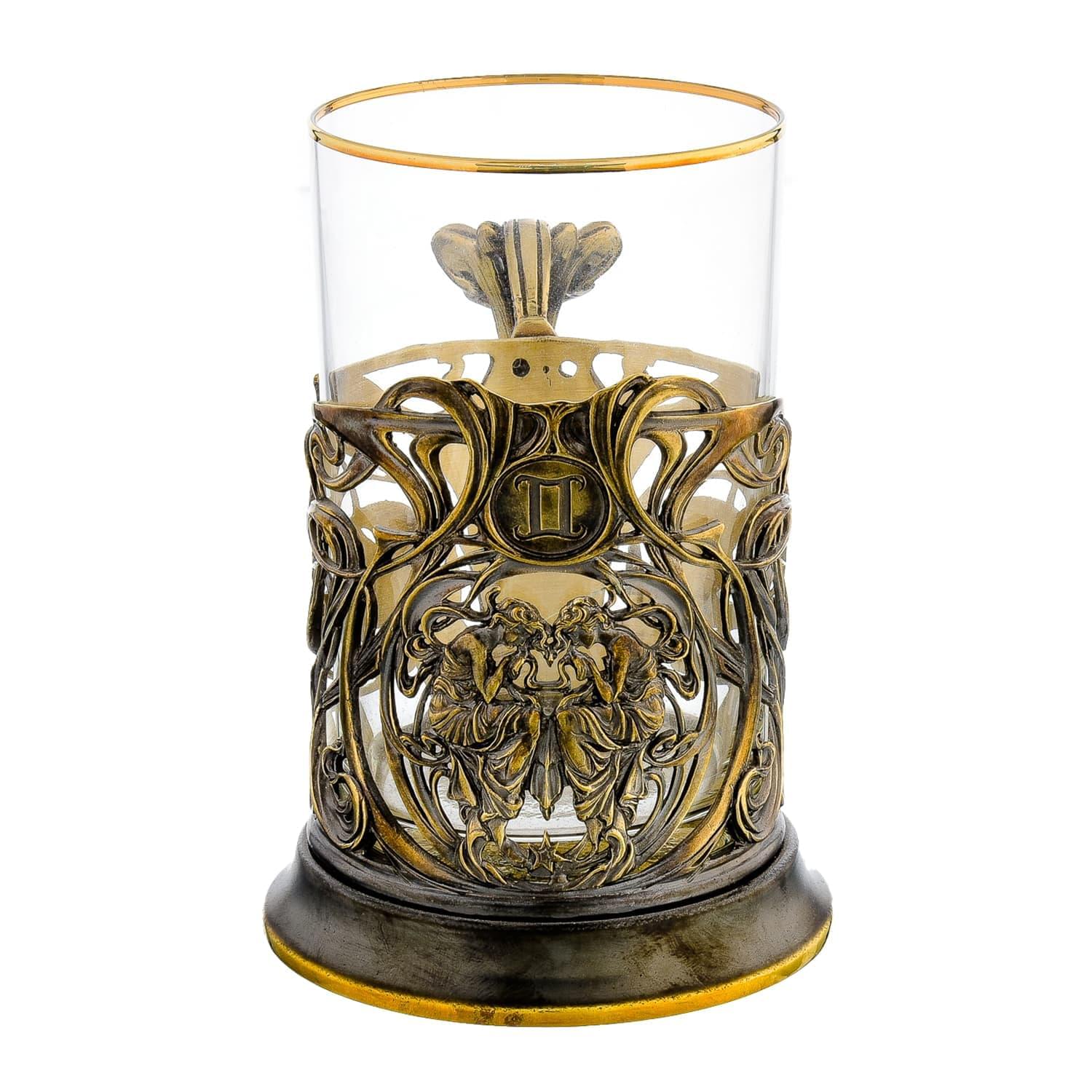 Корпус двухчастный: в литое основание вставлен стакан из стекла. На корпусе изображены Близнецы в фантасмагорической композиции.