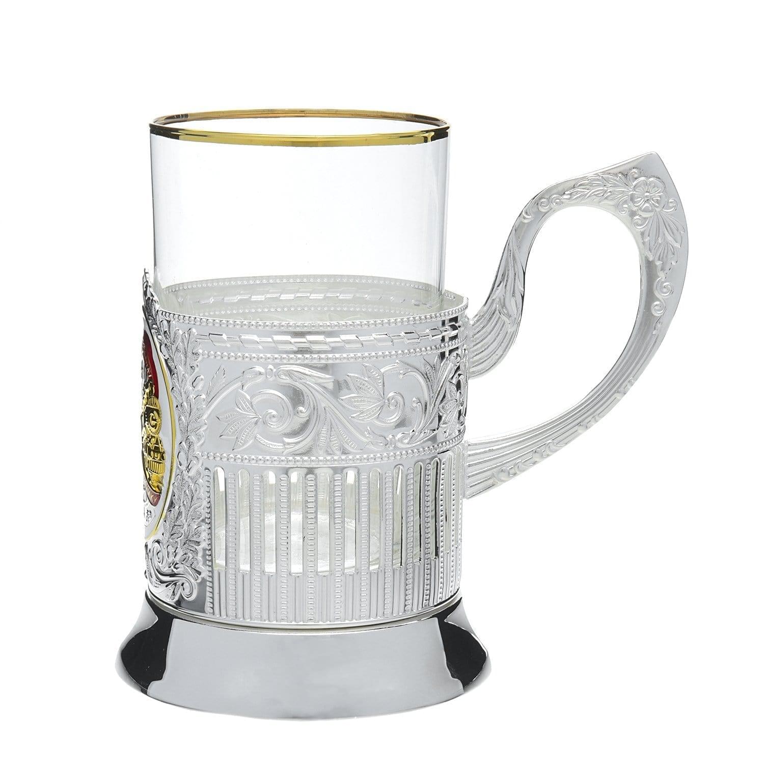 Подстаканник - это русский сувенир, дизайнерский питейный  сосуд в русском стиле, предназначенный для питья  горячих и холодных напитков. Дизайн подстаканника с металлическим корпусом и вставным стаканом восхищает  нас и иностранцев! Русский подстаканник в качестве подарка является прекрасной альтернативой кружке.