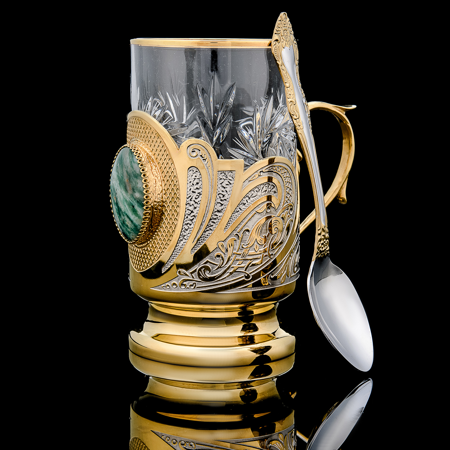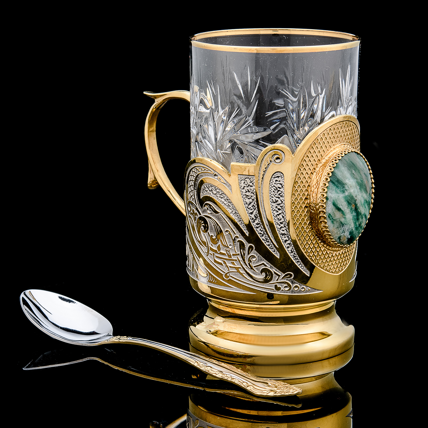 Подстаканник с позолотой и малахитом. Златоуст