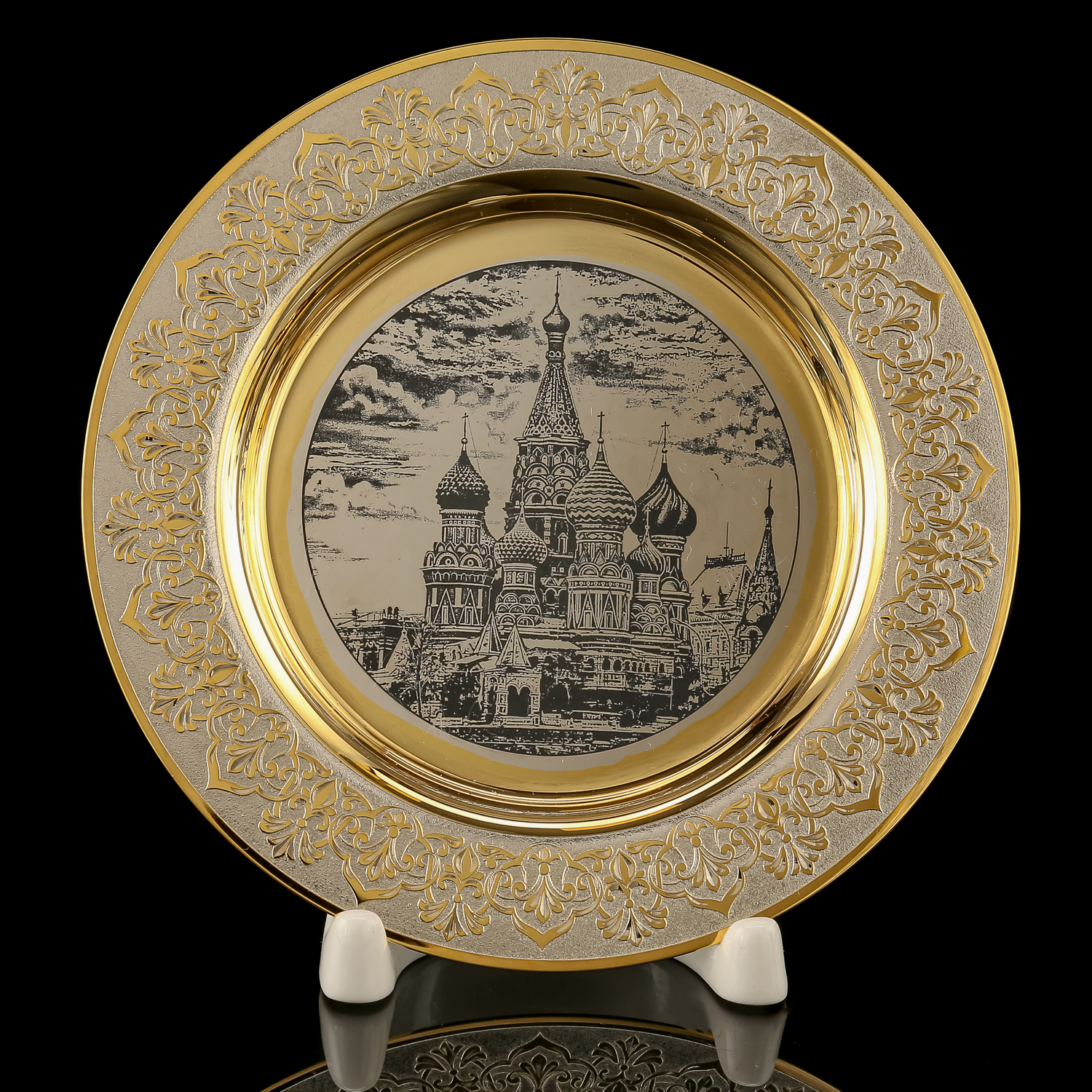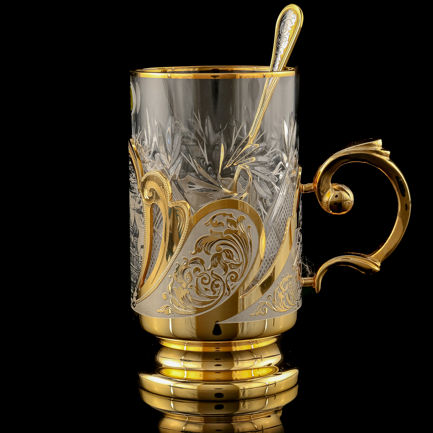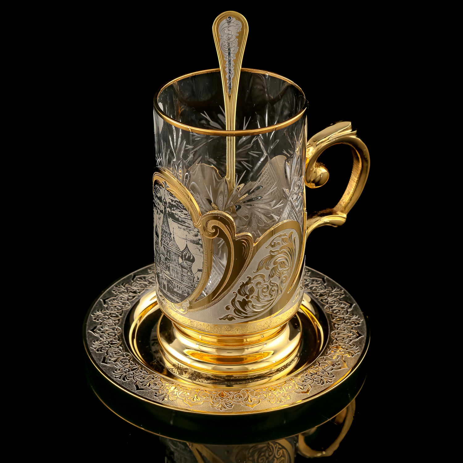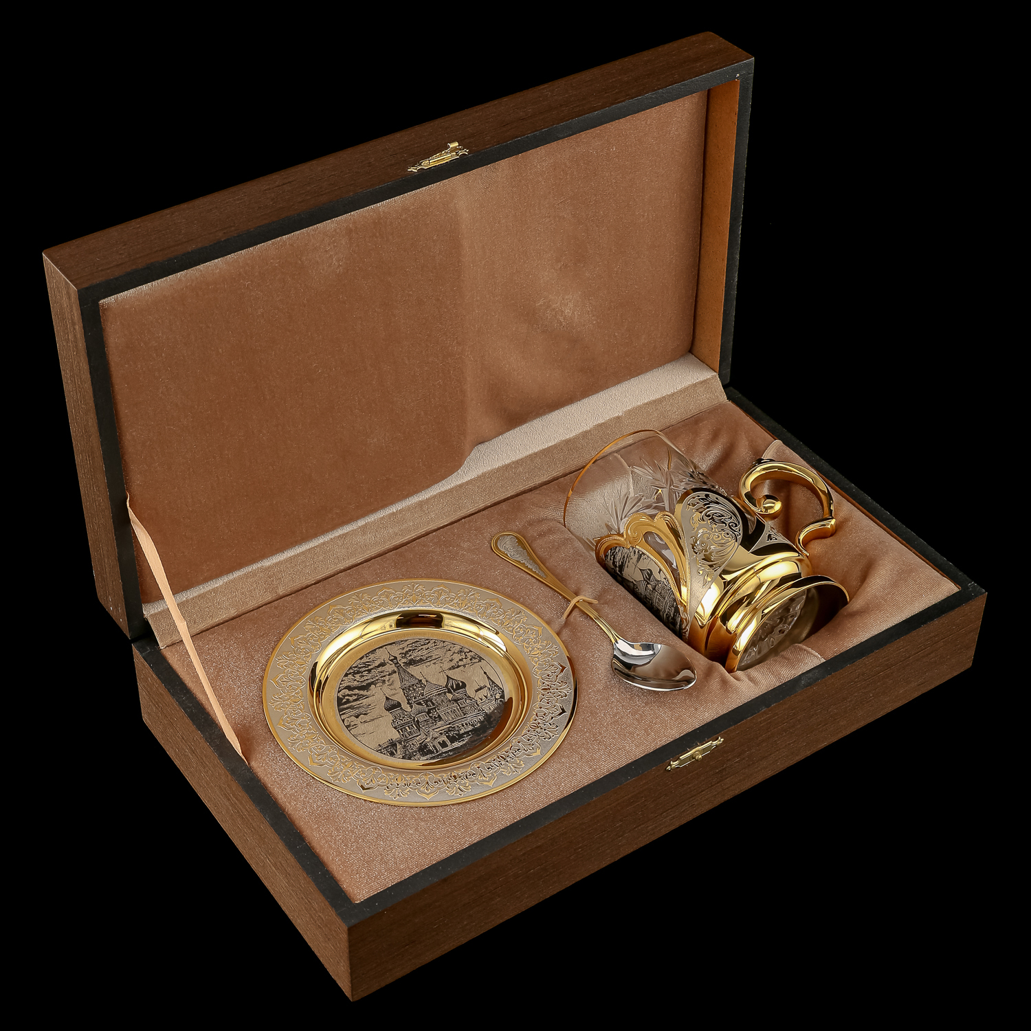 Чайный набор с подстаканником "Москва". Златоуст.Материалы: латунь, никель, золото 999,9*, чернение.