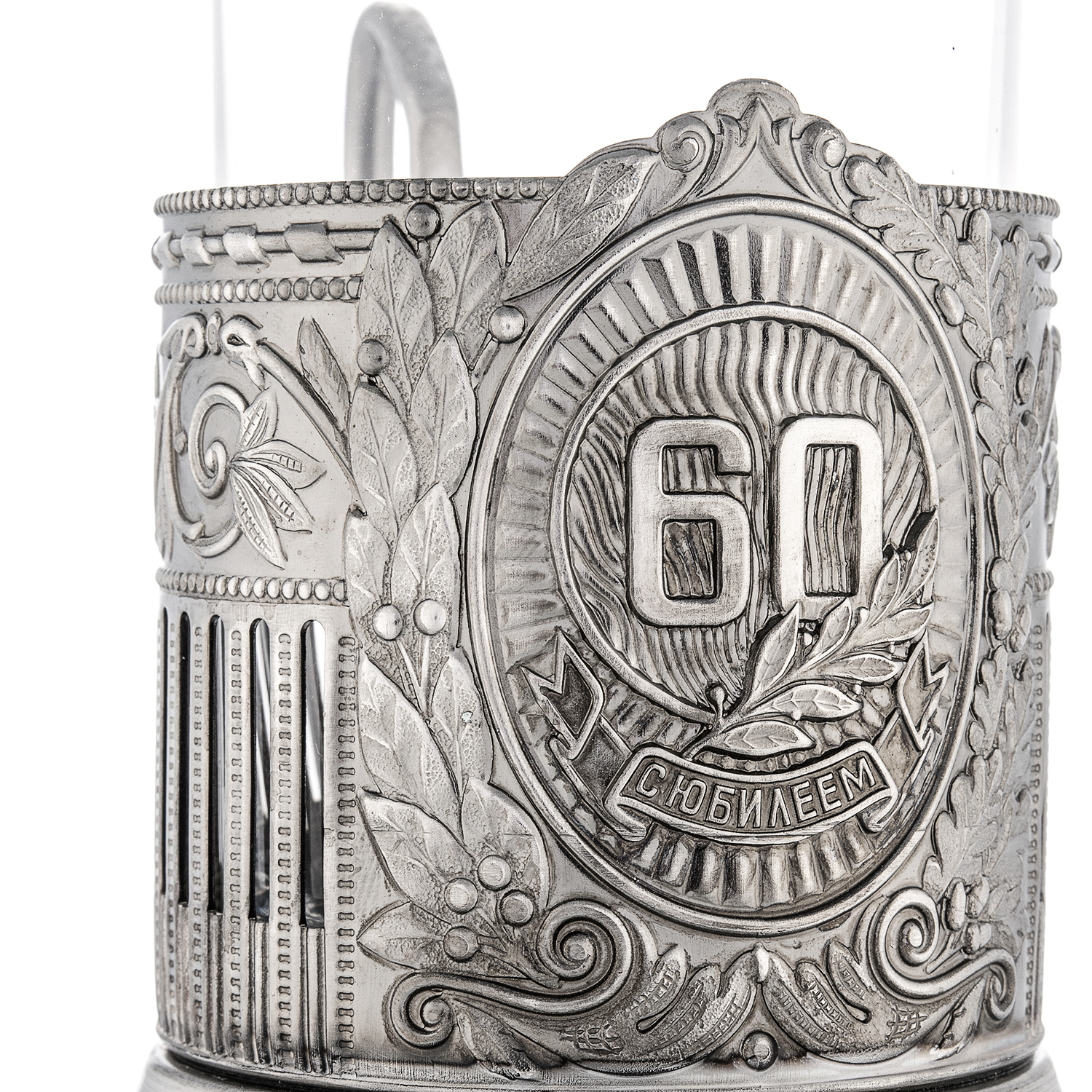 Русские подарки и сувениры → Посуда → Подстаканники → Подстаканник никелированный "Юбилейный. 60 лет"