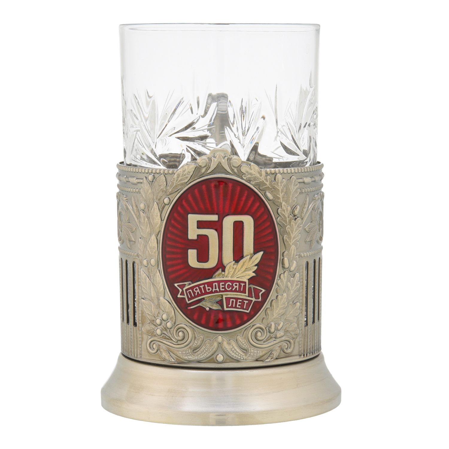 Русские подарки и сувениры → Посуда → Подстаканники → Подстаканник никелированный "Юбилейный. 50 лет"