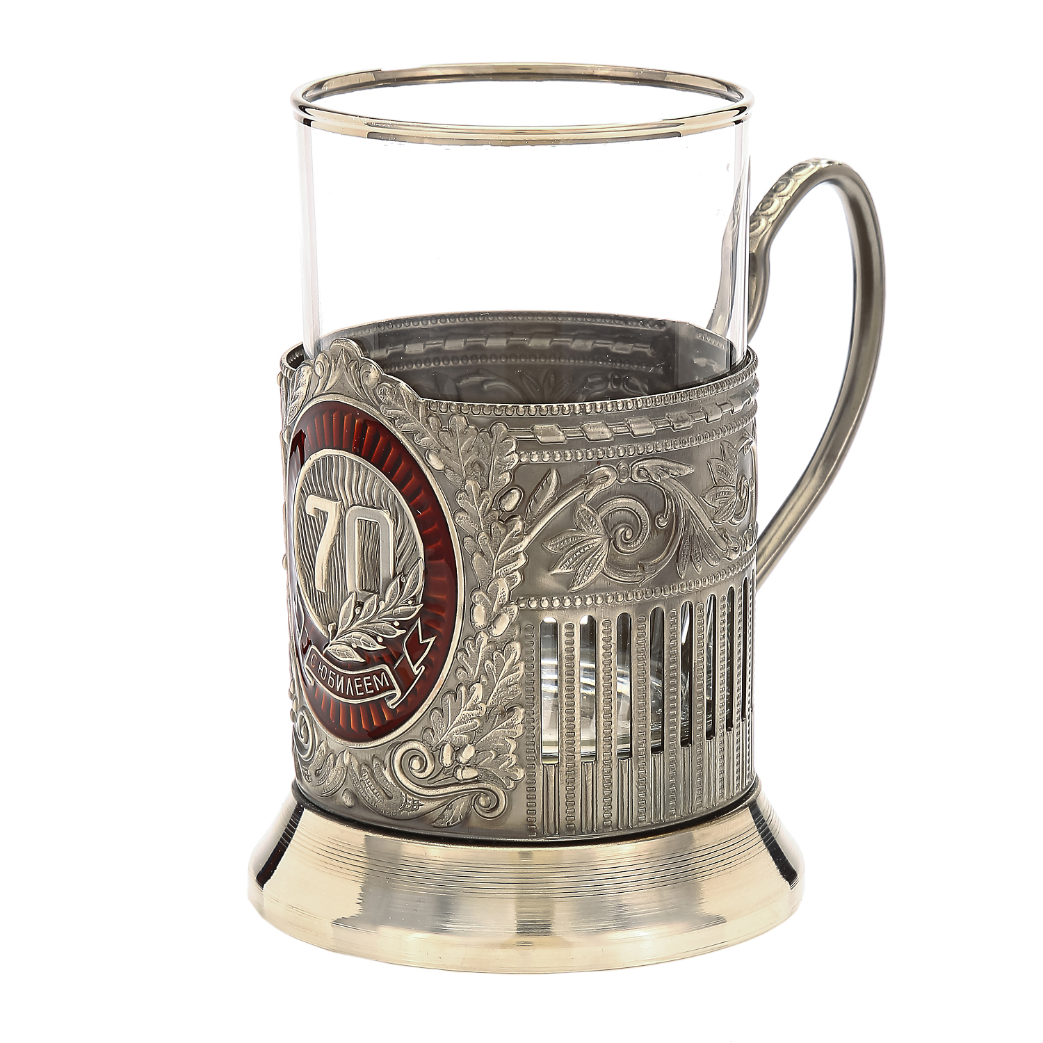 Русские подарки и сувениры → Посуда → Подстаканники → Подстаканник никелированный "Юбилейный. 70 лет"