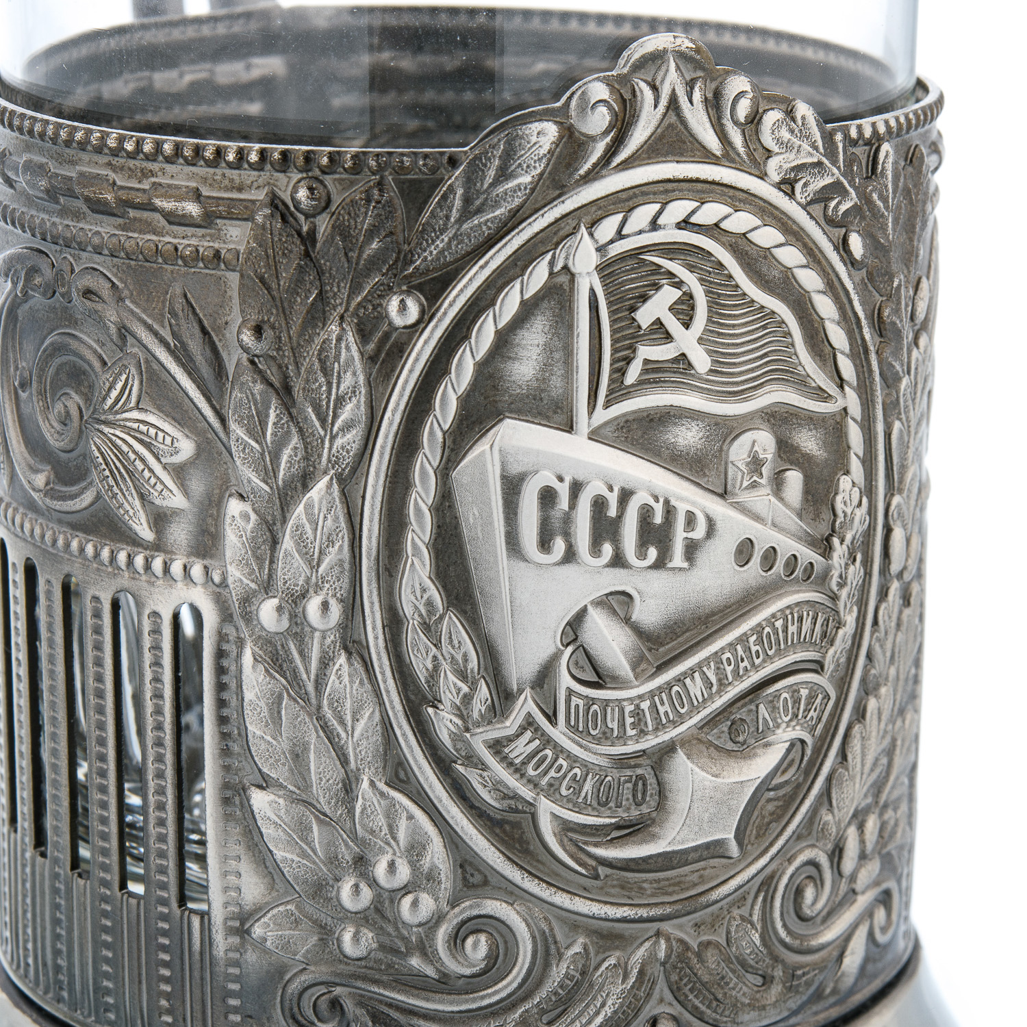 Русские подарки и сувениры → Посуда → Подстаканники → Подстаканник никелированный "Почетному работнику морфлота"