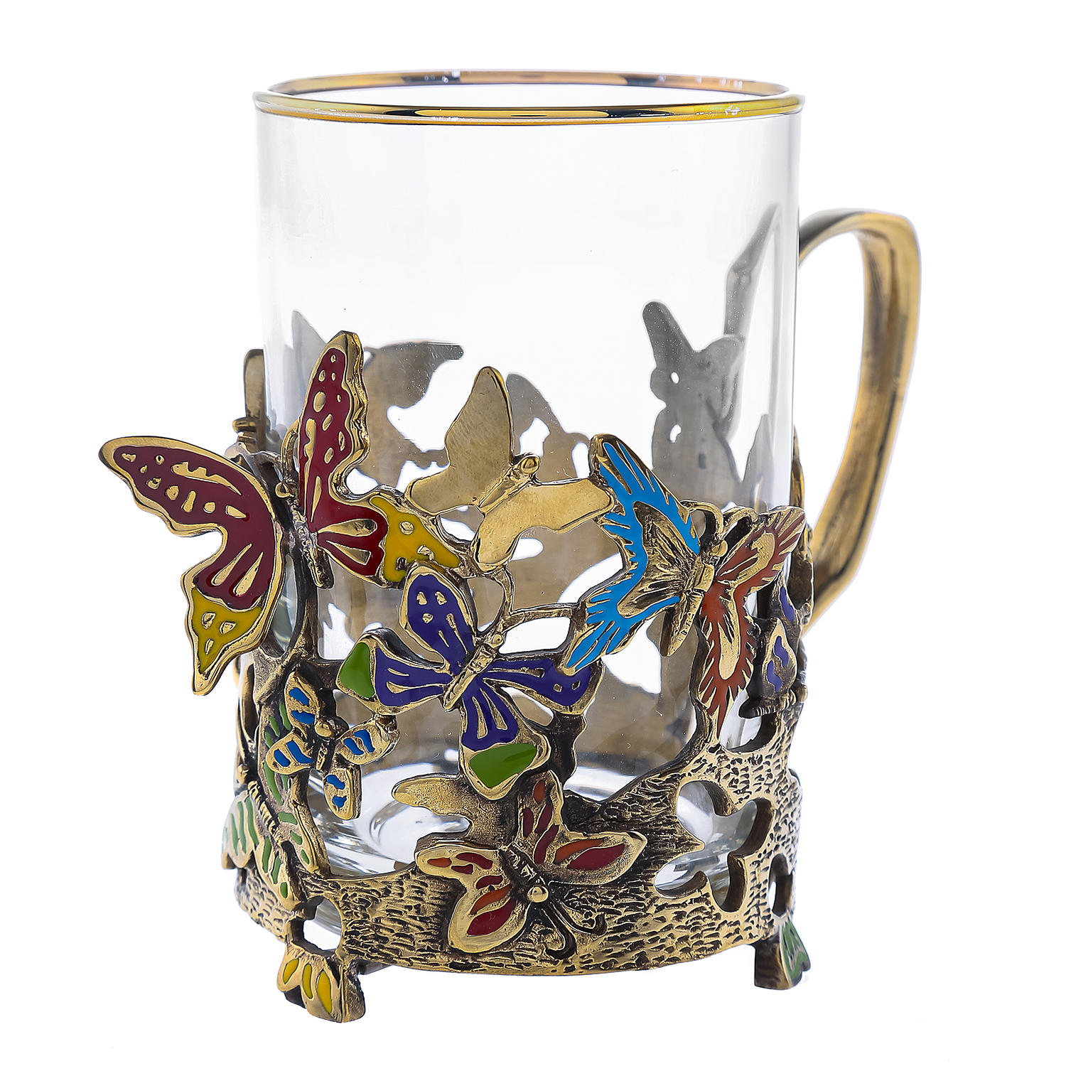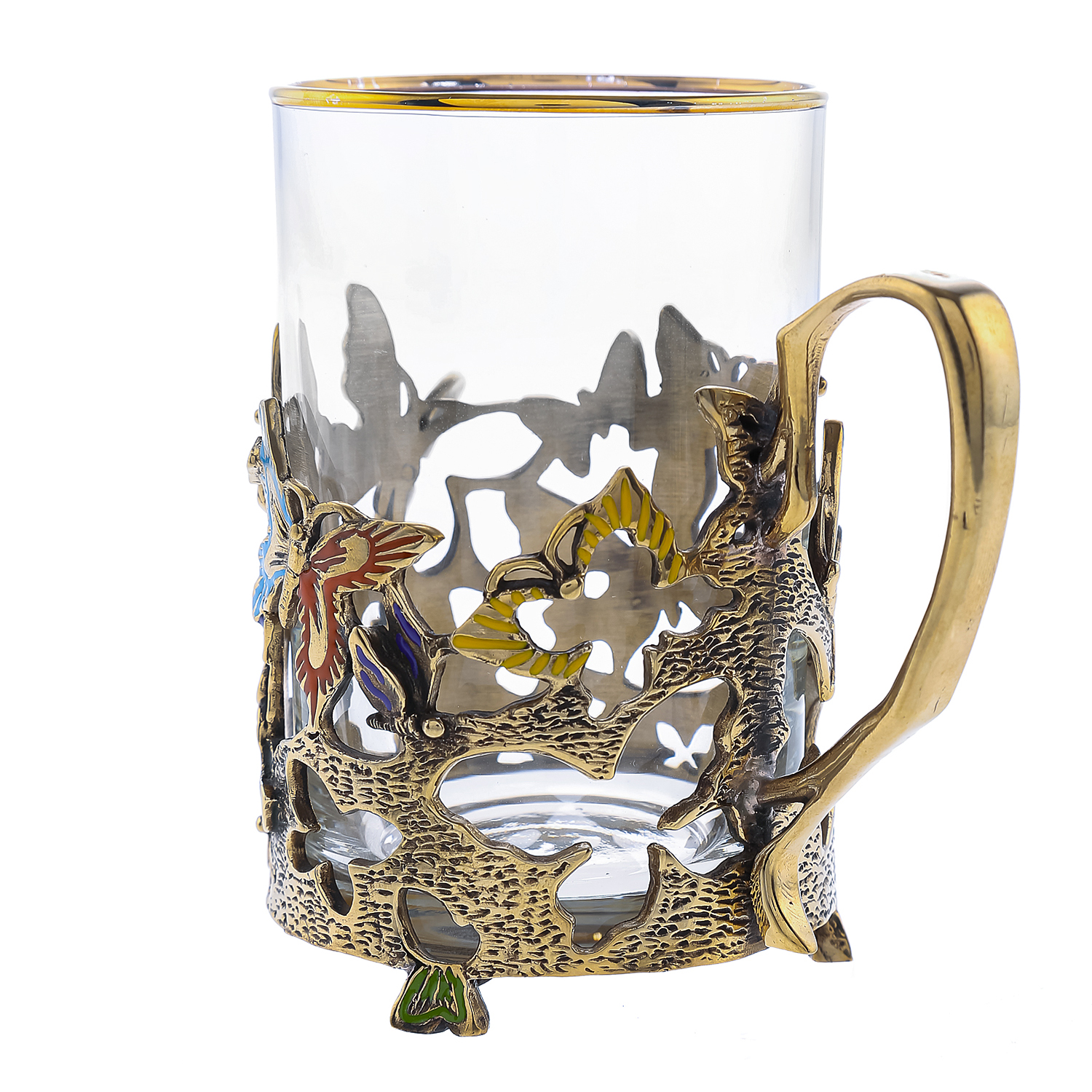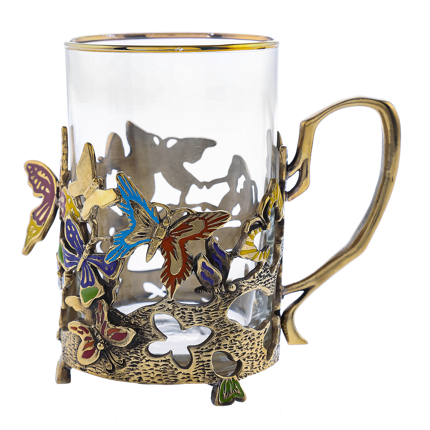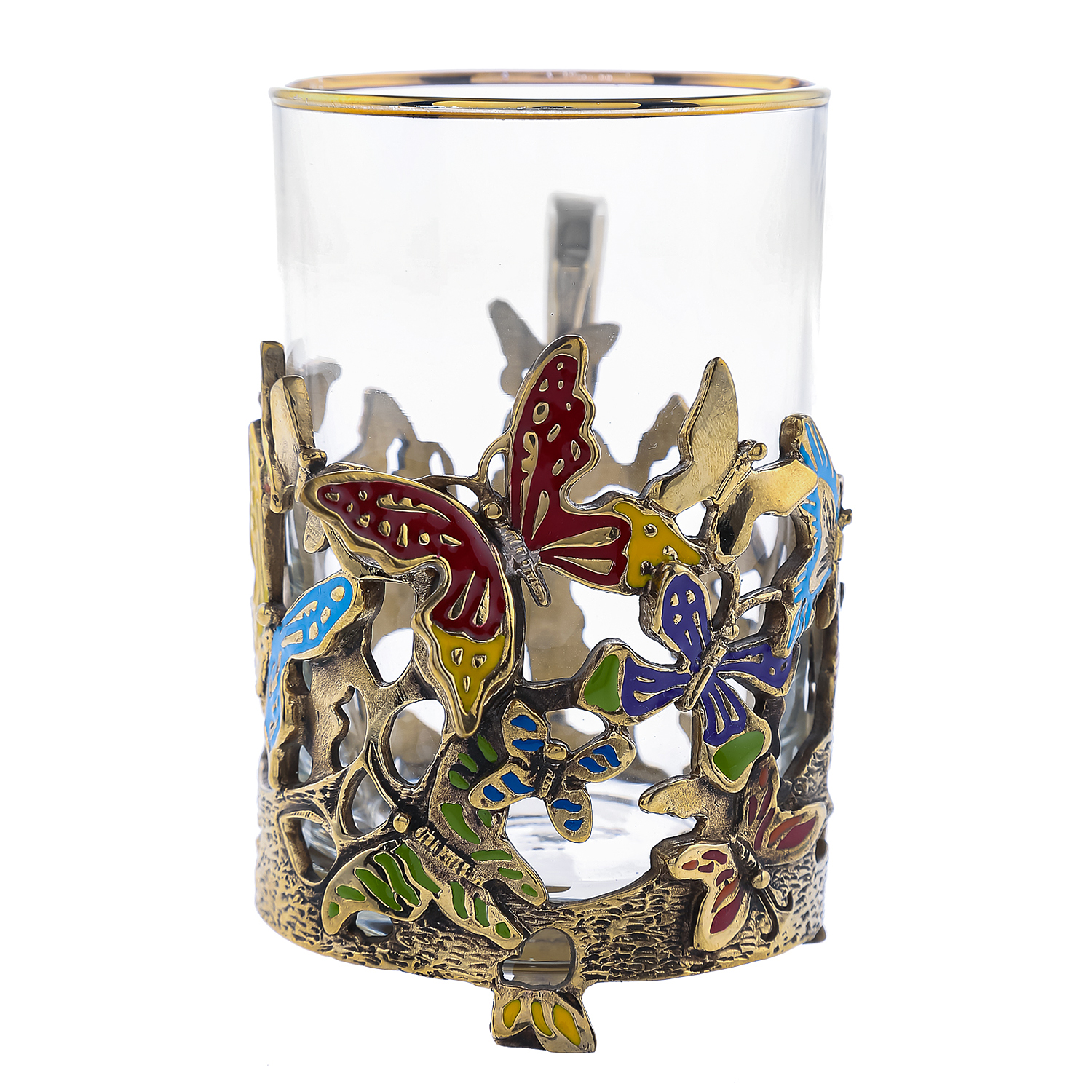 Подстаканник латунный с эмалью "Бабочки".Стакан в комплект не входит, приобретается отдельно.