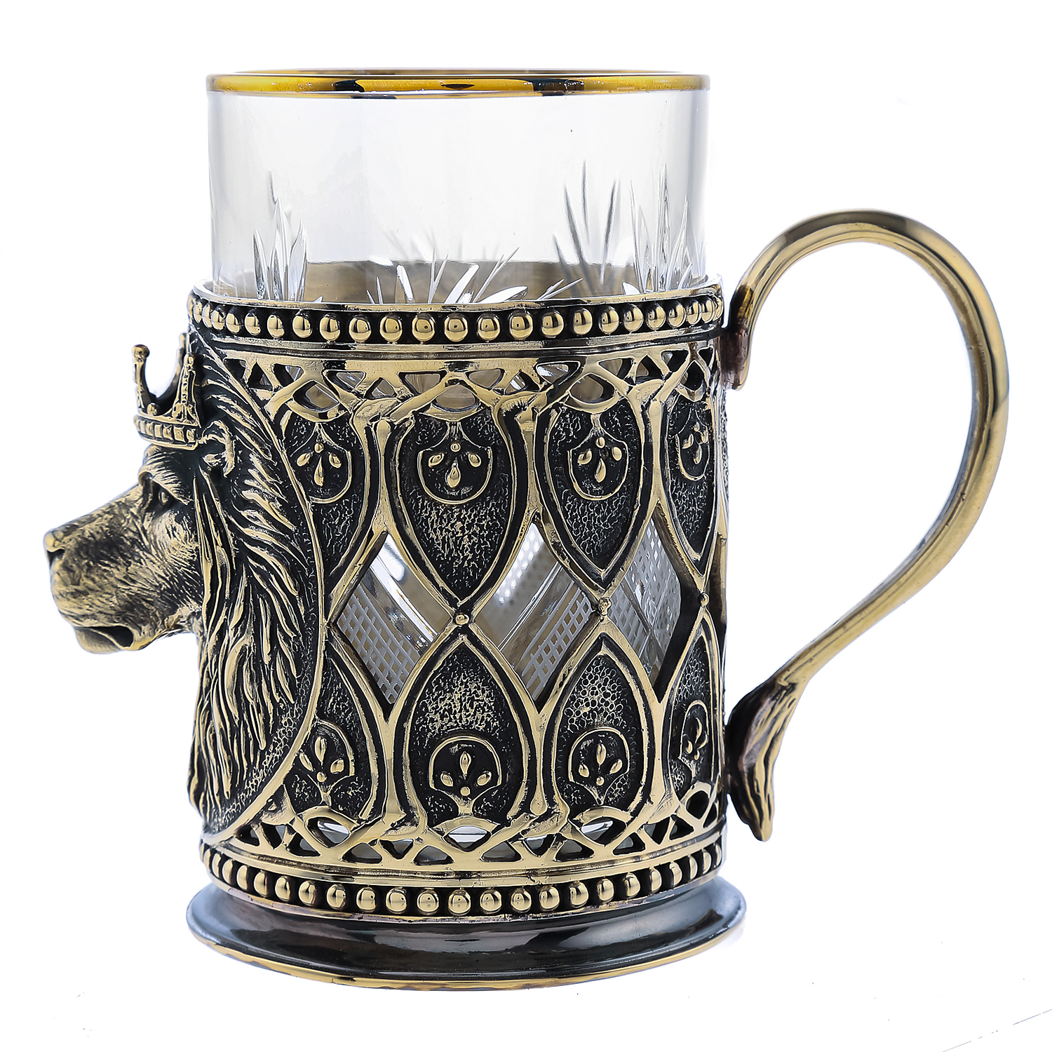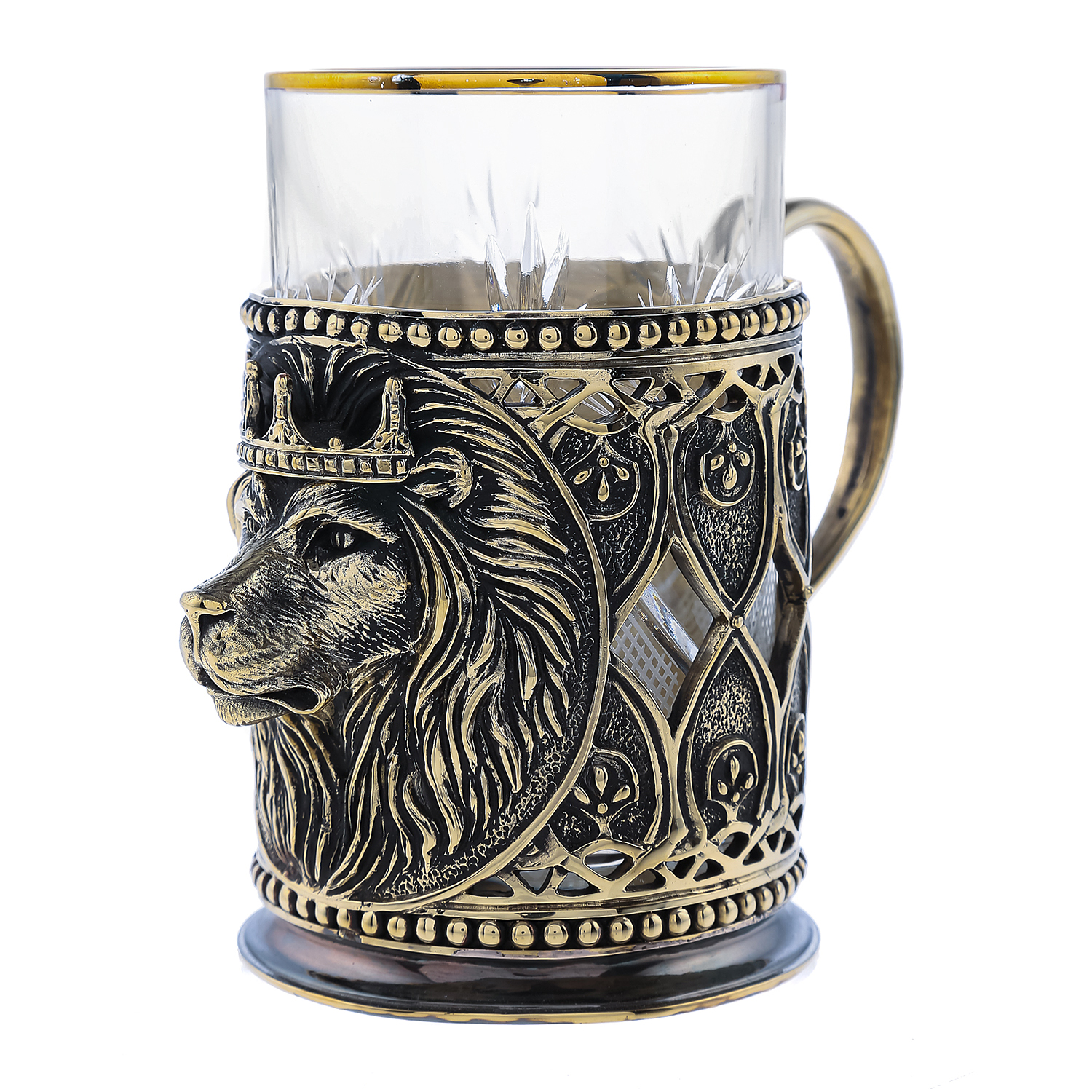 Подстаканник латунный "Лев".Стакан в комплект не входит, приобретается отдельно.
