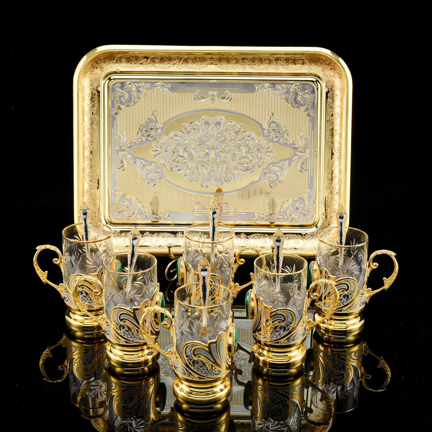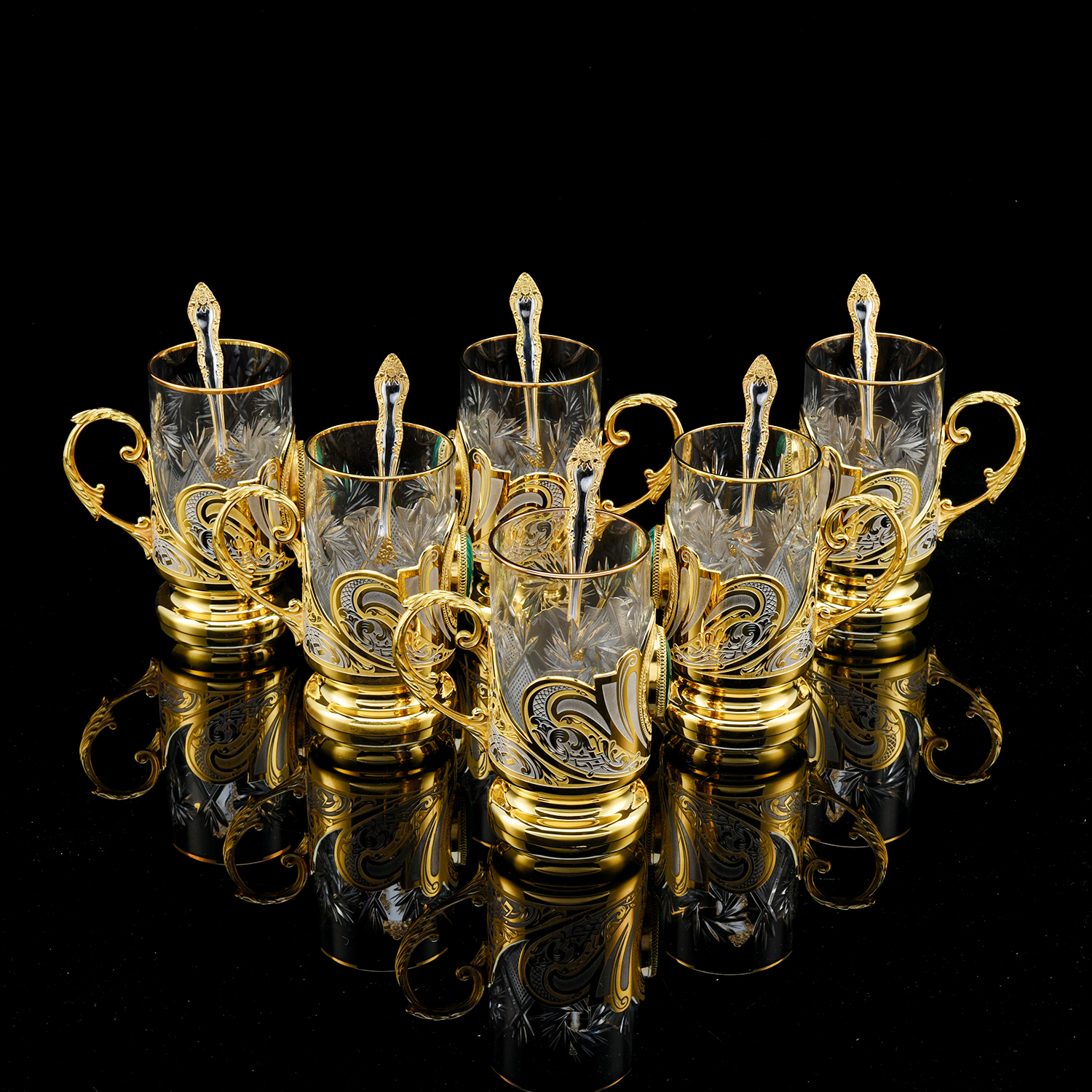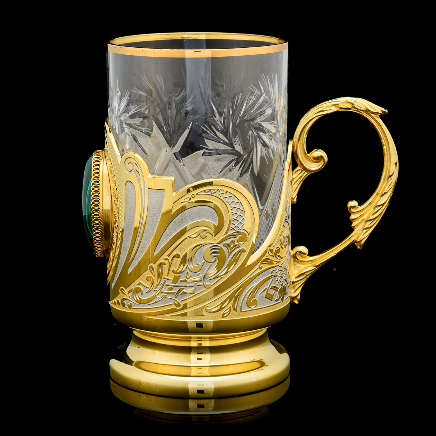 Чайный набор с подстаканниками "Малахит". Златоуст
