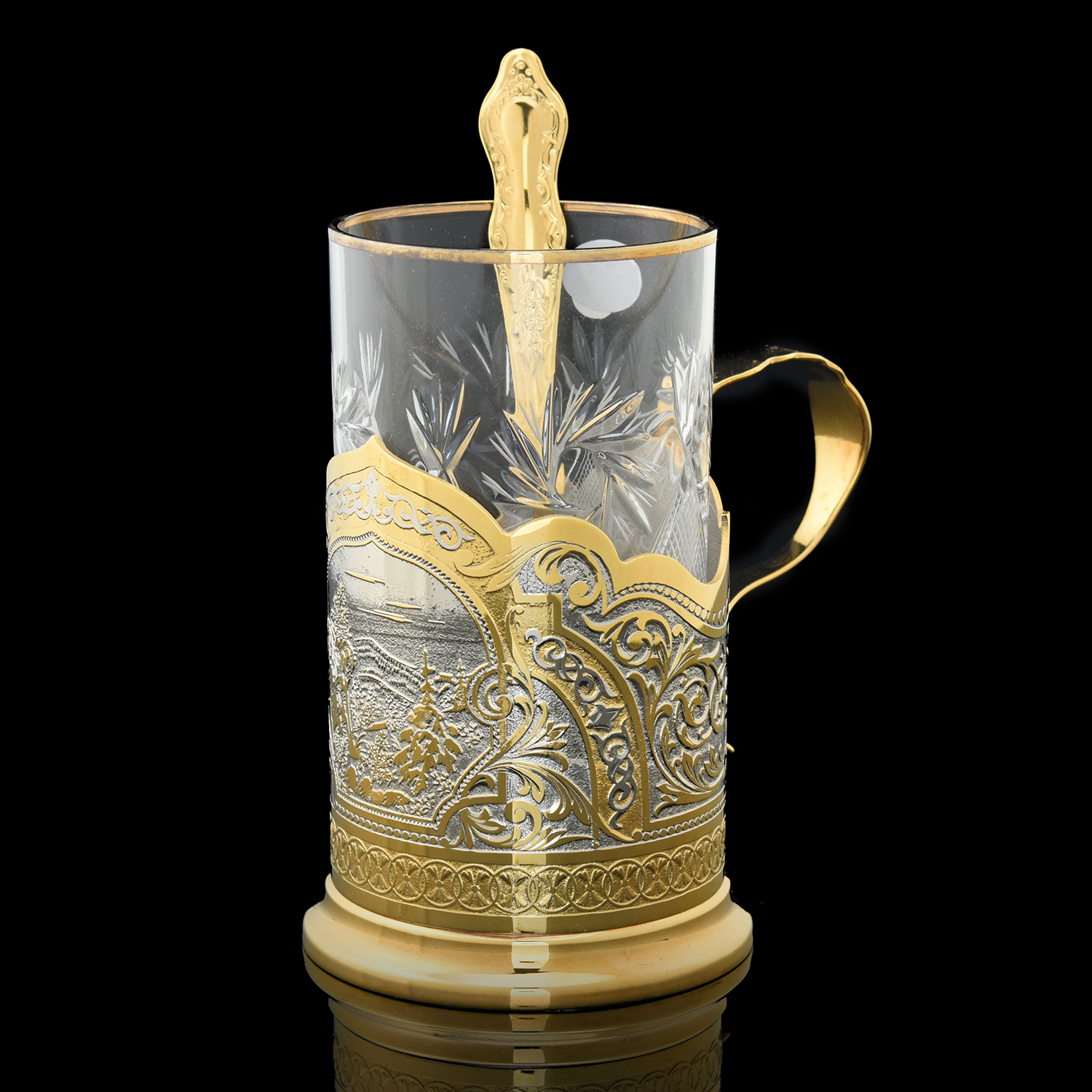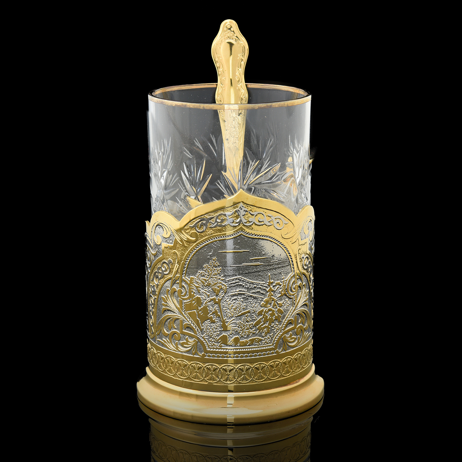 Русские подарки и сувениры → Посуда → Подстаканники → 202514 Златоуст Подстаканник "ПРИРОДА"+ложка , в П/У SUV 5556