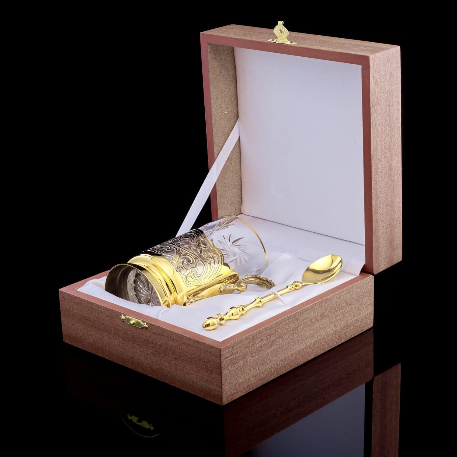 Подстаканник воплощает посредством Златоустовской гравюры на металле густой лес русского Таганая, национального парка на Южном Урале на территории Челябинской области. Его территория охватывает северную часть средневысотных горных хребтов Южного Урала, горный узел, переходящий в плоскогорья и равнинную лесостепь. Растительный мир Таганая похож на многоцветный узел, объединяющий разные природные зоны, елово-пихтовые, лиственные, березовые, сосновые леса тайги. Тут же видны горные степи, а высокогорья занимают субальпийские луга и горные тундры ....