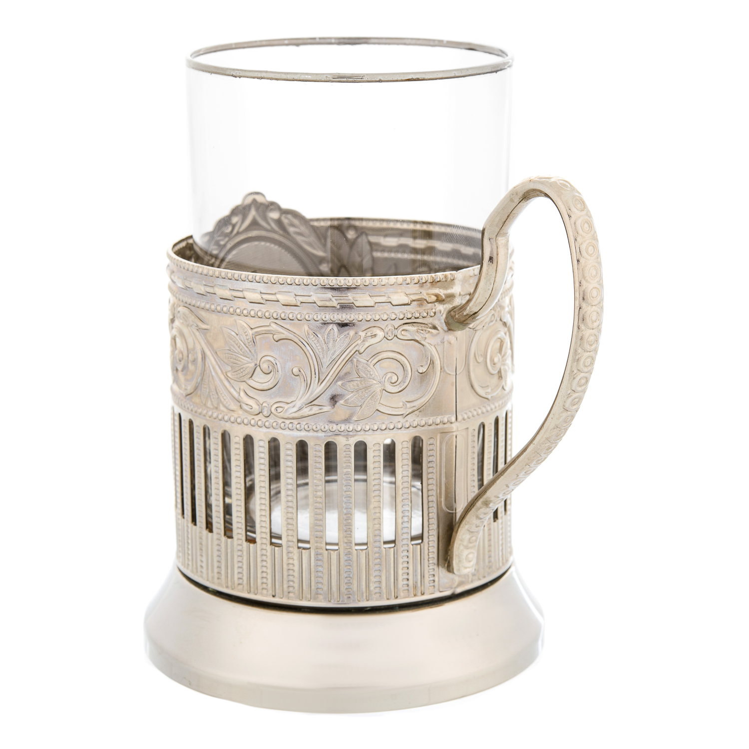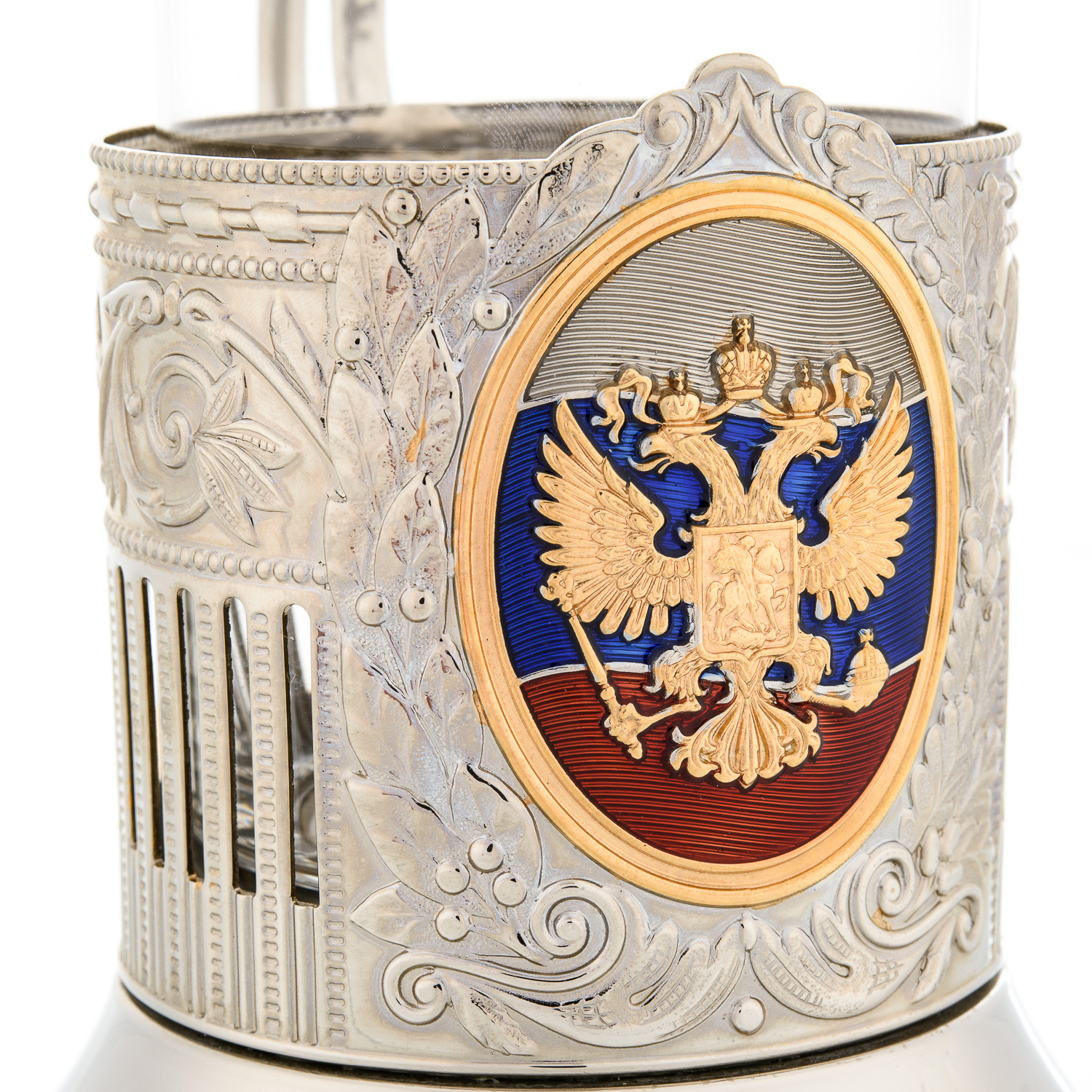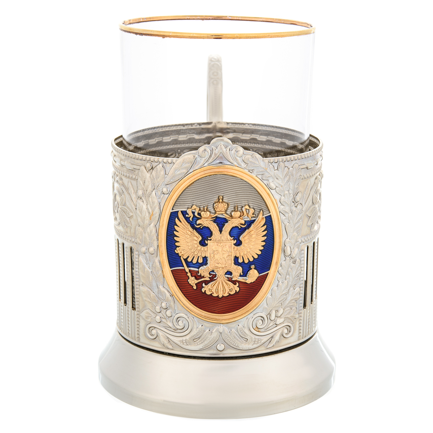 Русские подарки и сувениры → Посуда → Подстаканники → Подстаканник никелированный "Герб РФ. Триколор"