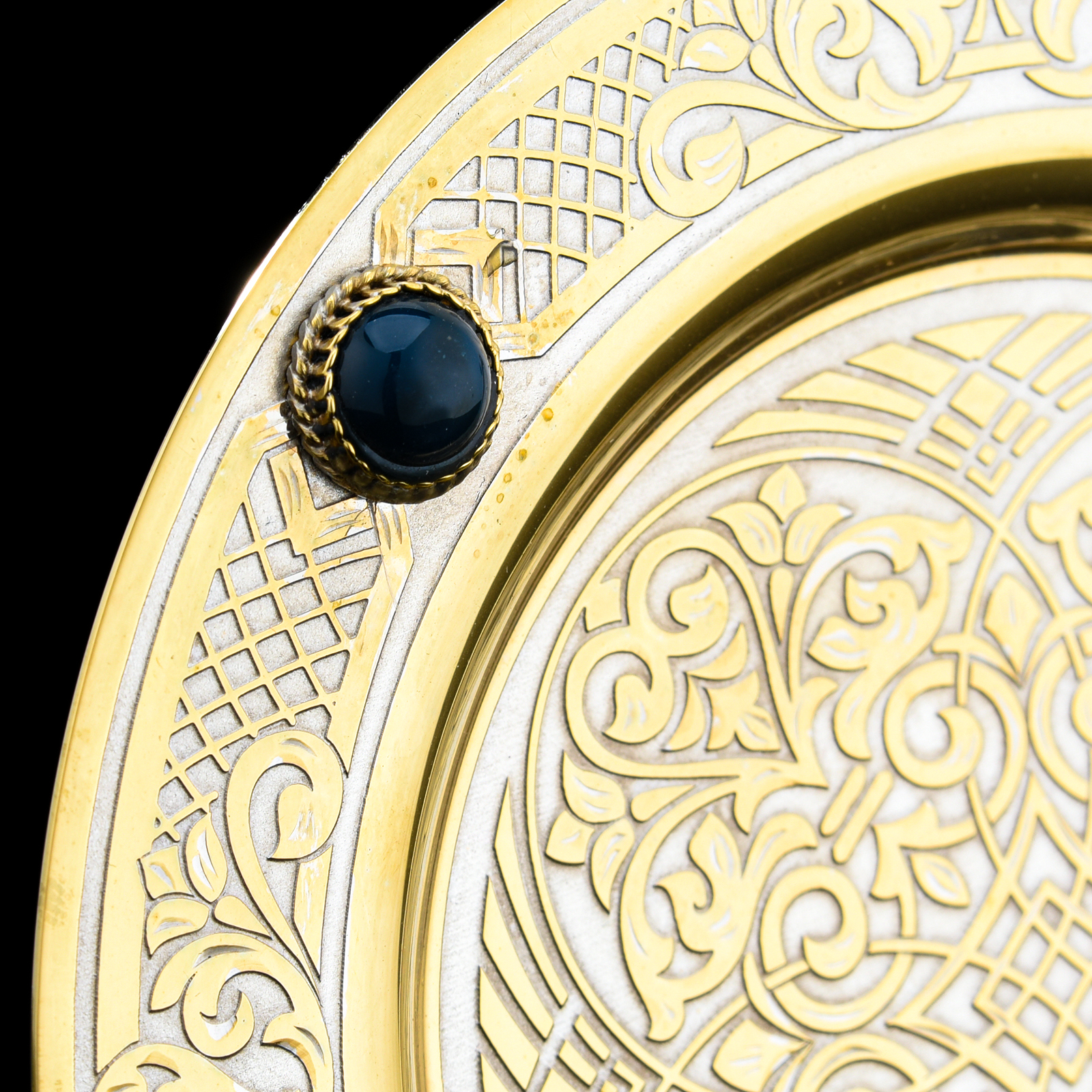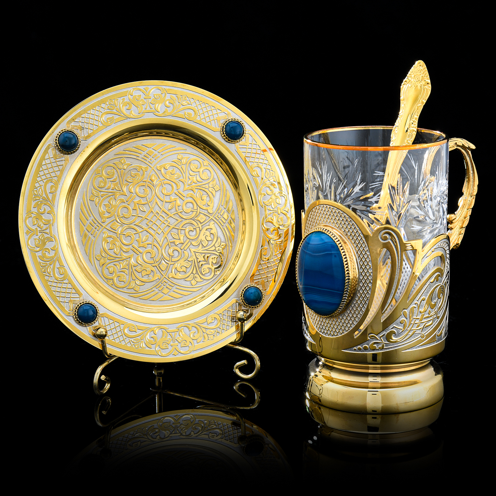 Подстаканник с блюдцем "Агат". Златоуст.Материалы: латунь, никель, золото 999,9*, агат.