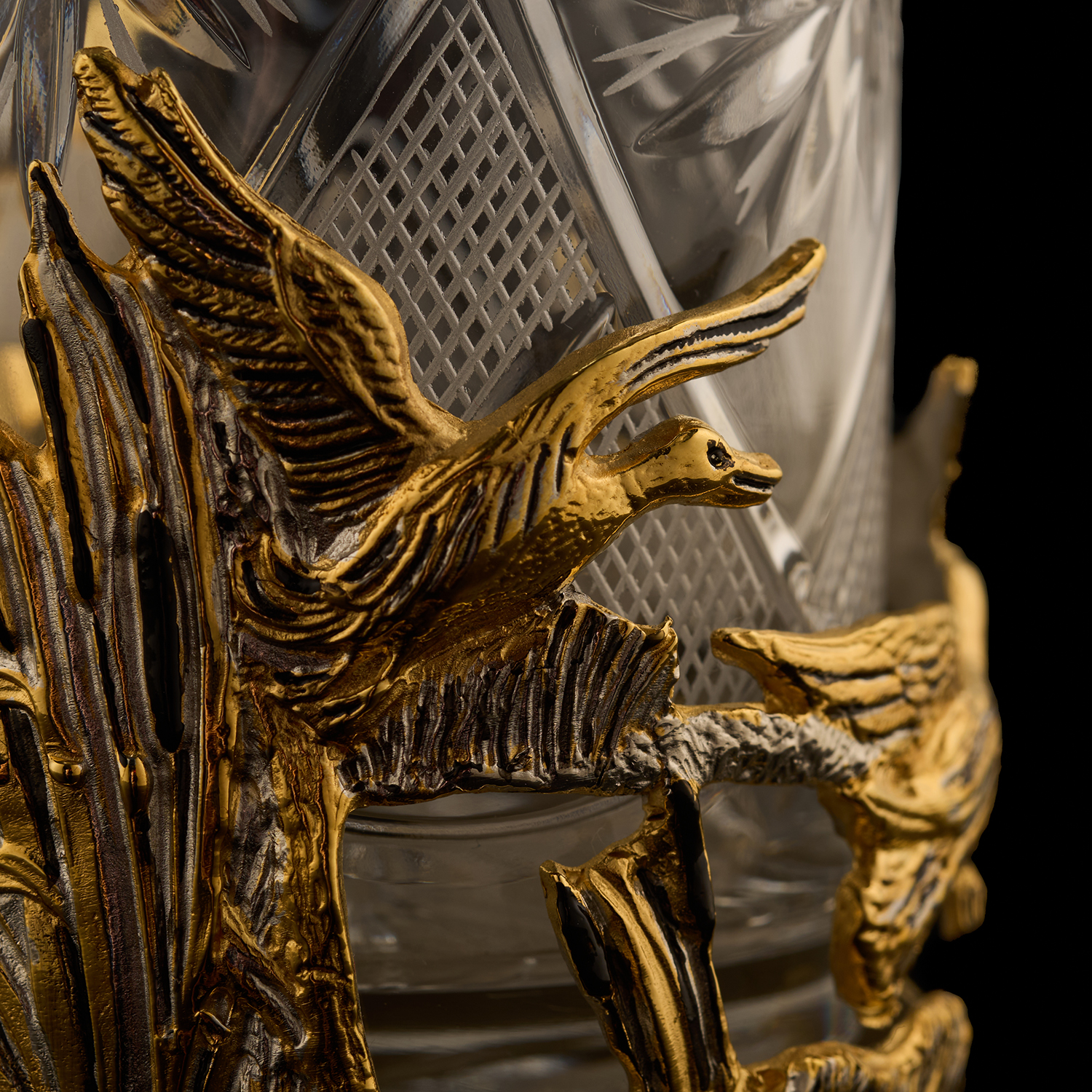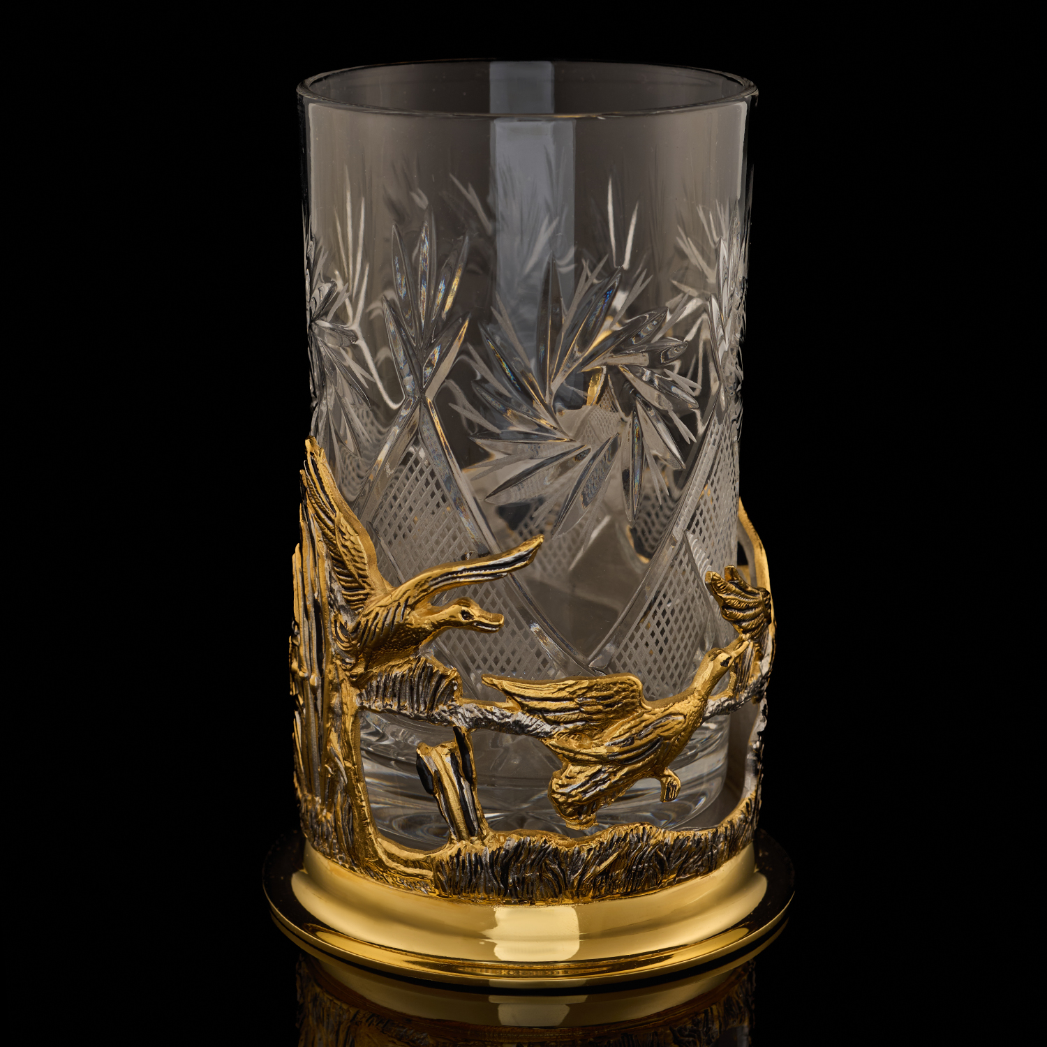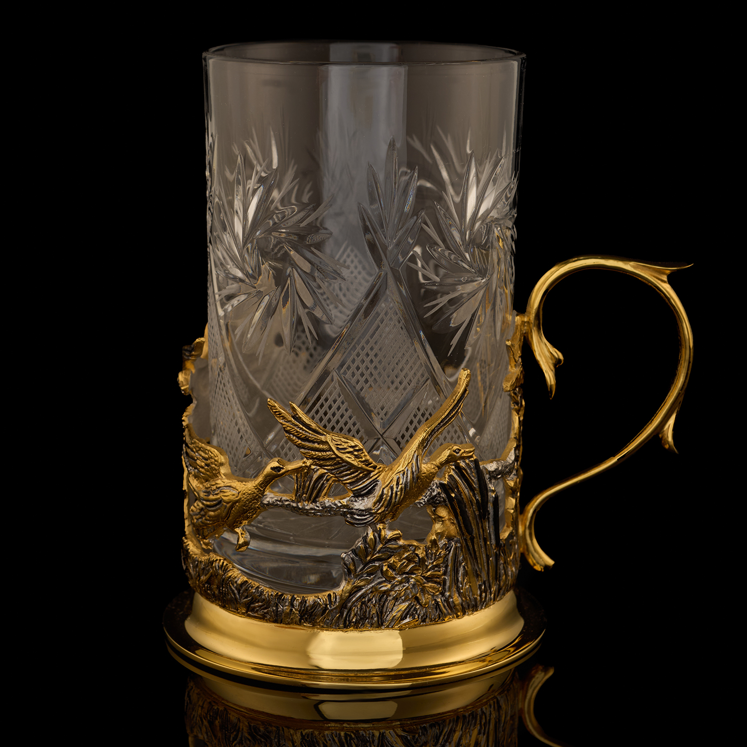 Подстаканник "Утиная охота". Златоуст.Материалы: латунь, золото 999,9*, серебрение.