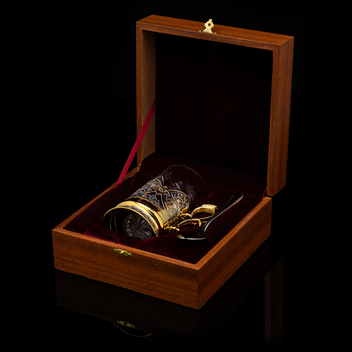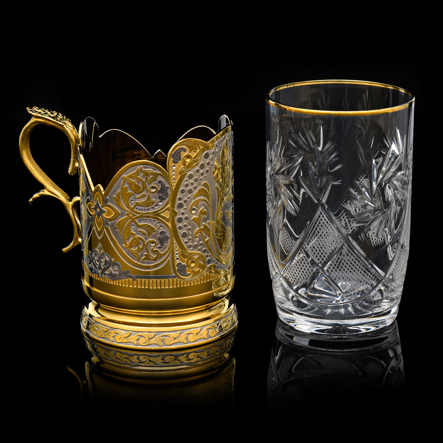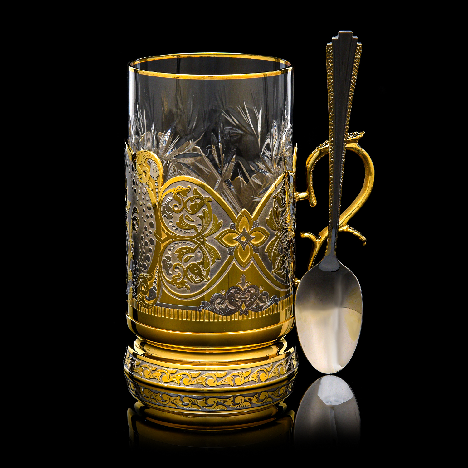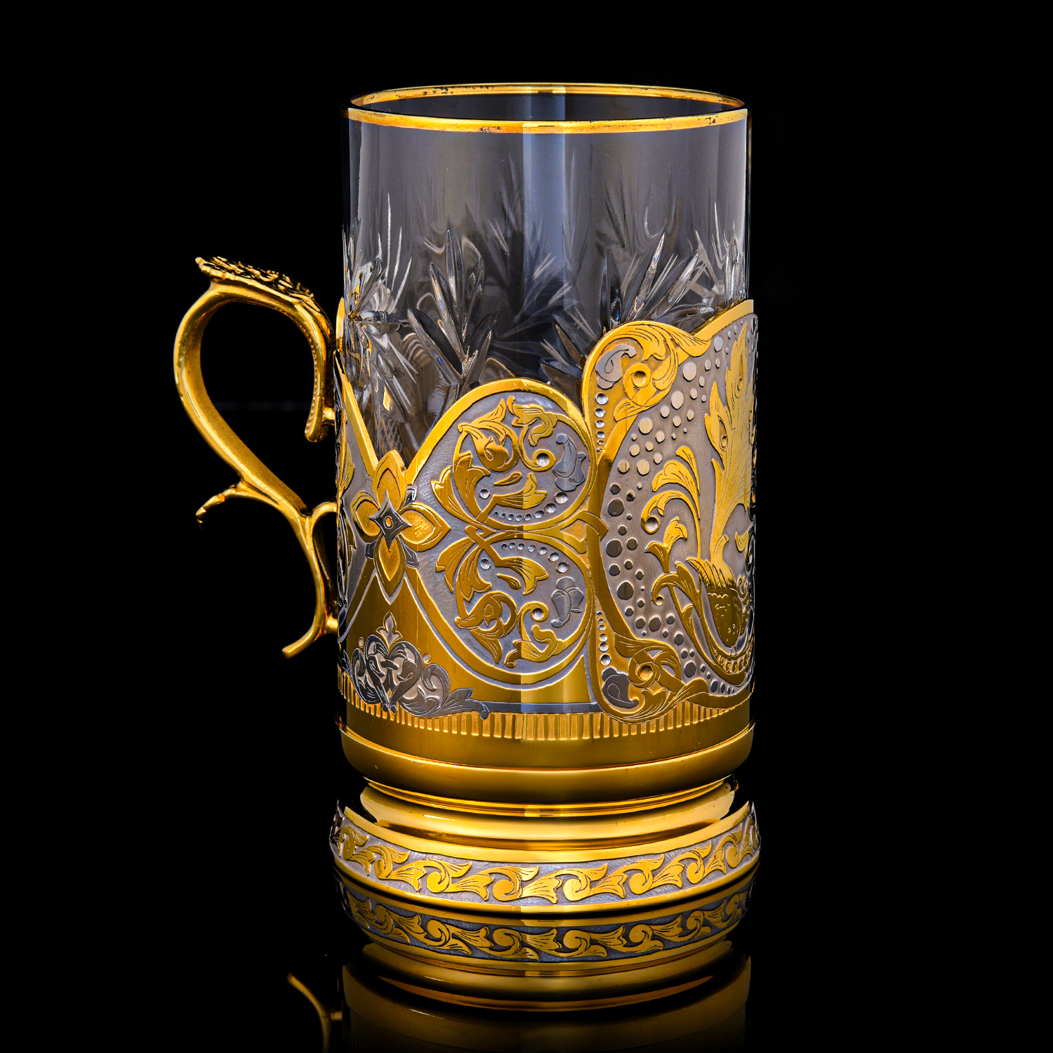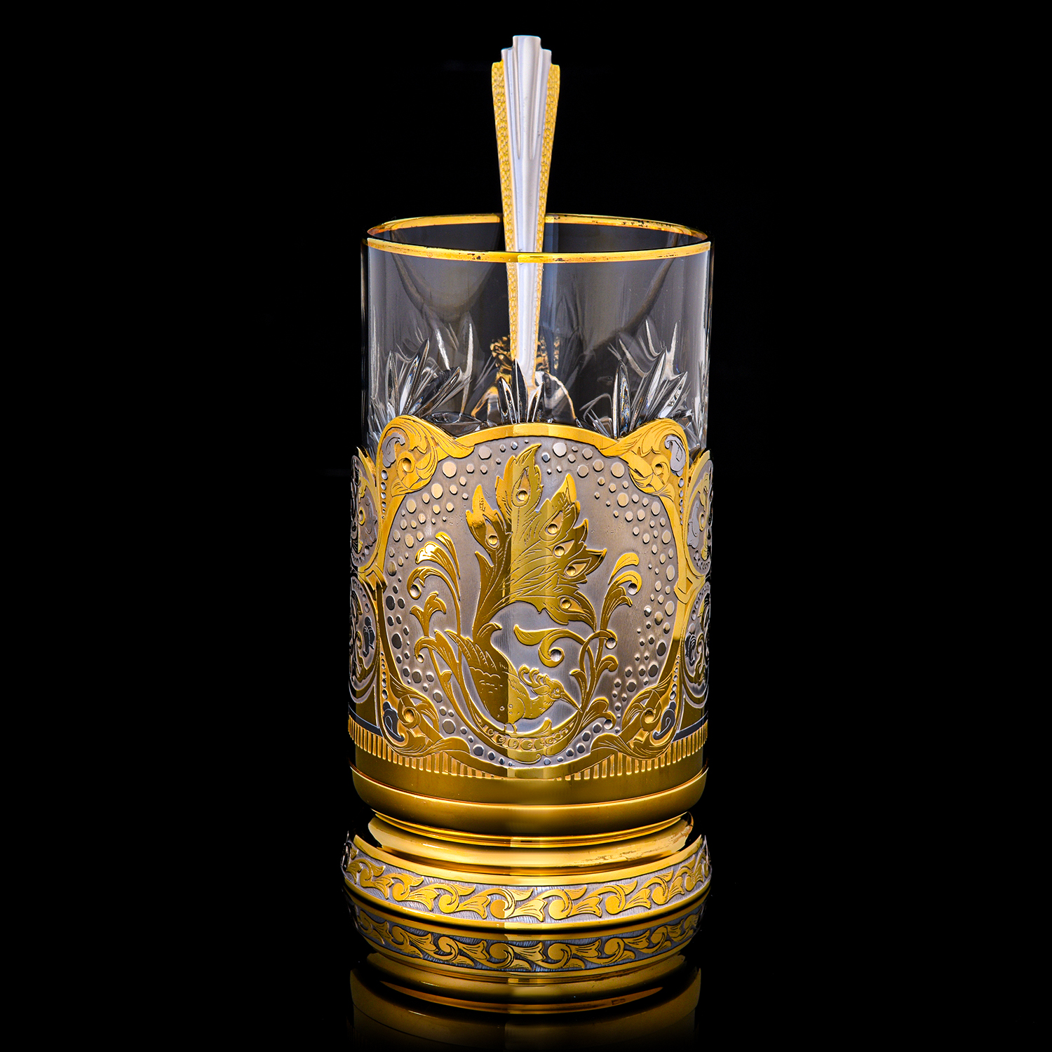 Подстаканник "Павлин". Златоуст.Материалы: латунь, никель, золото 999,9*, хрусталь.