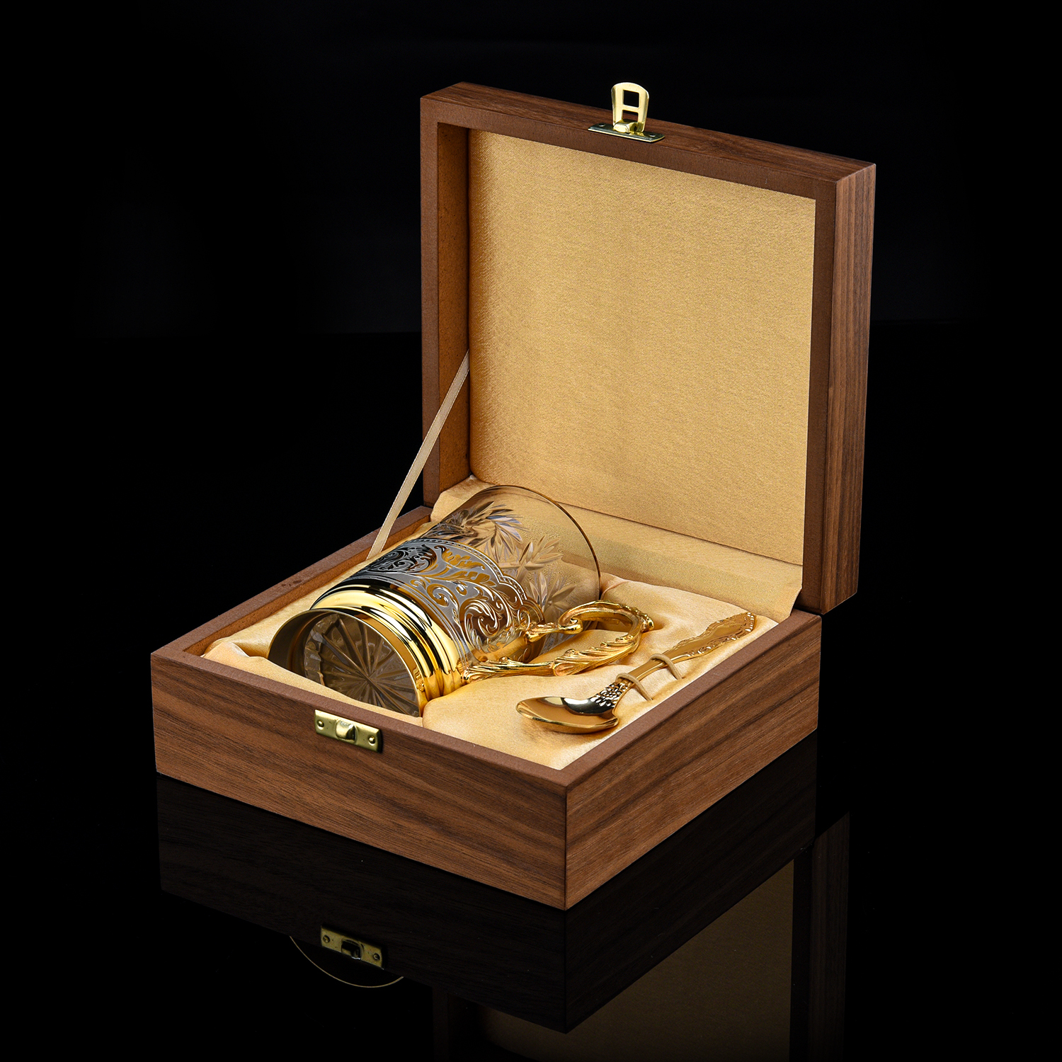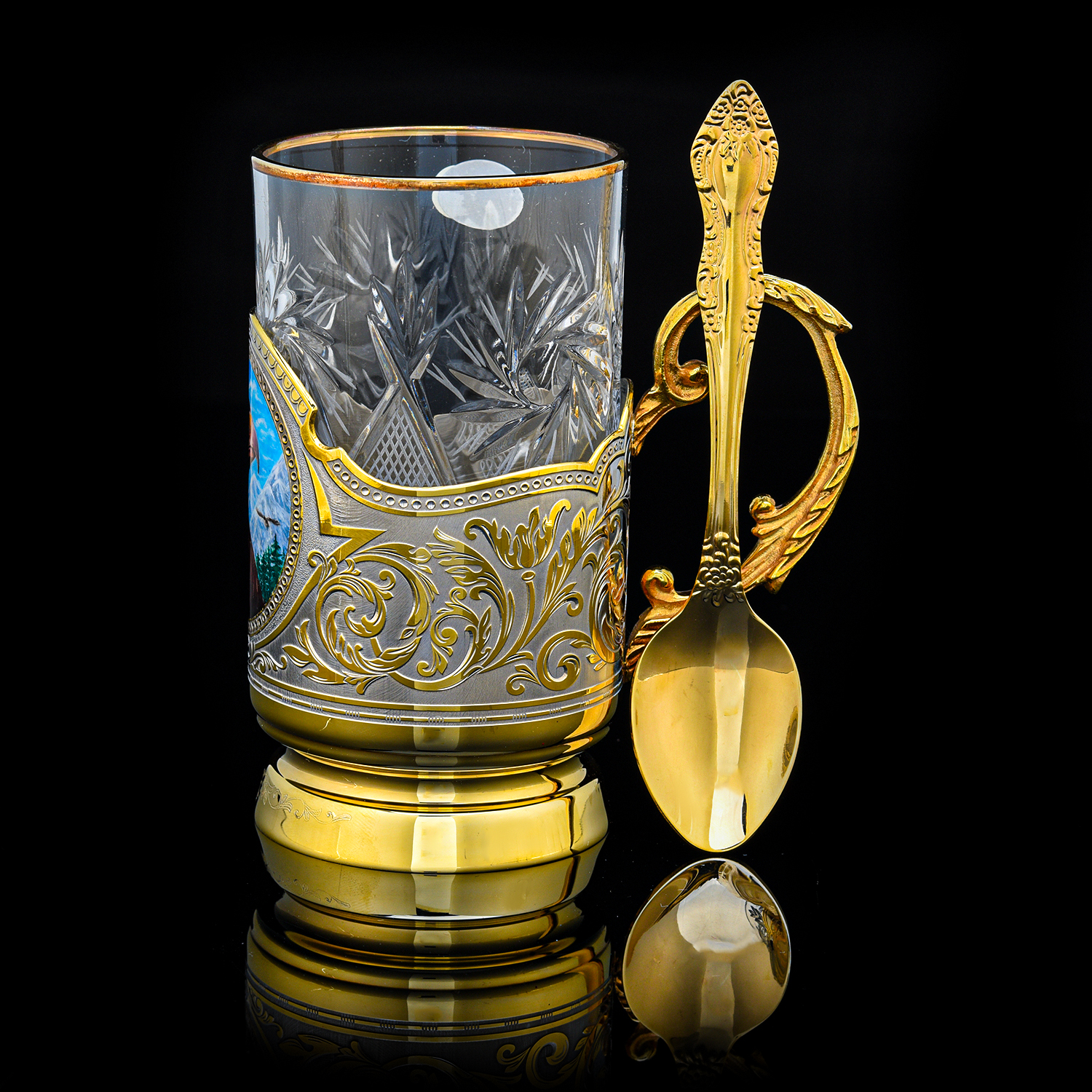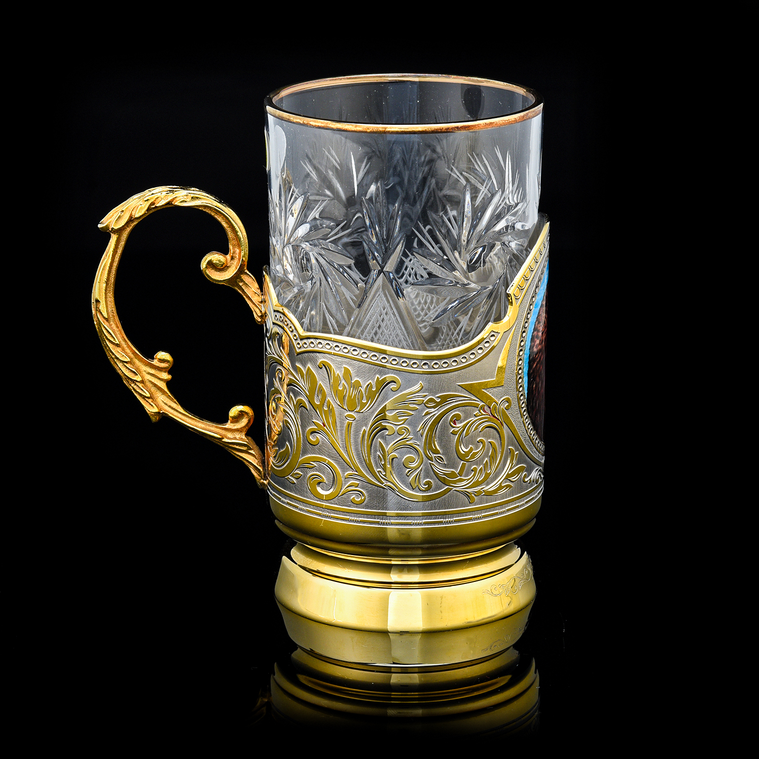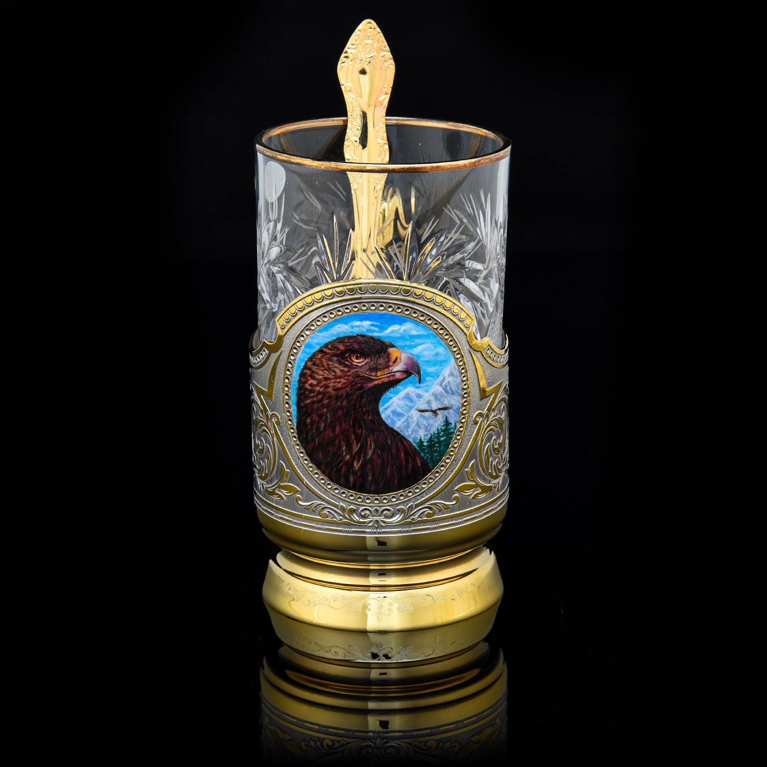 Подстаканник "Орел". Златоуст.Материалы: латунь, никель, золото 999,9*, эмаль, хрусталь.