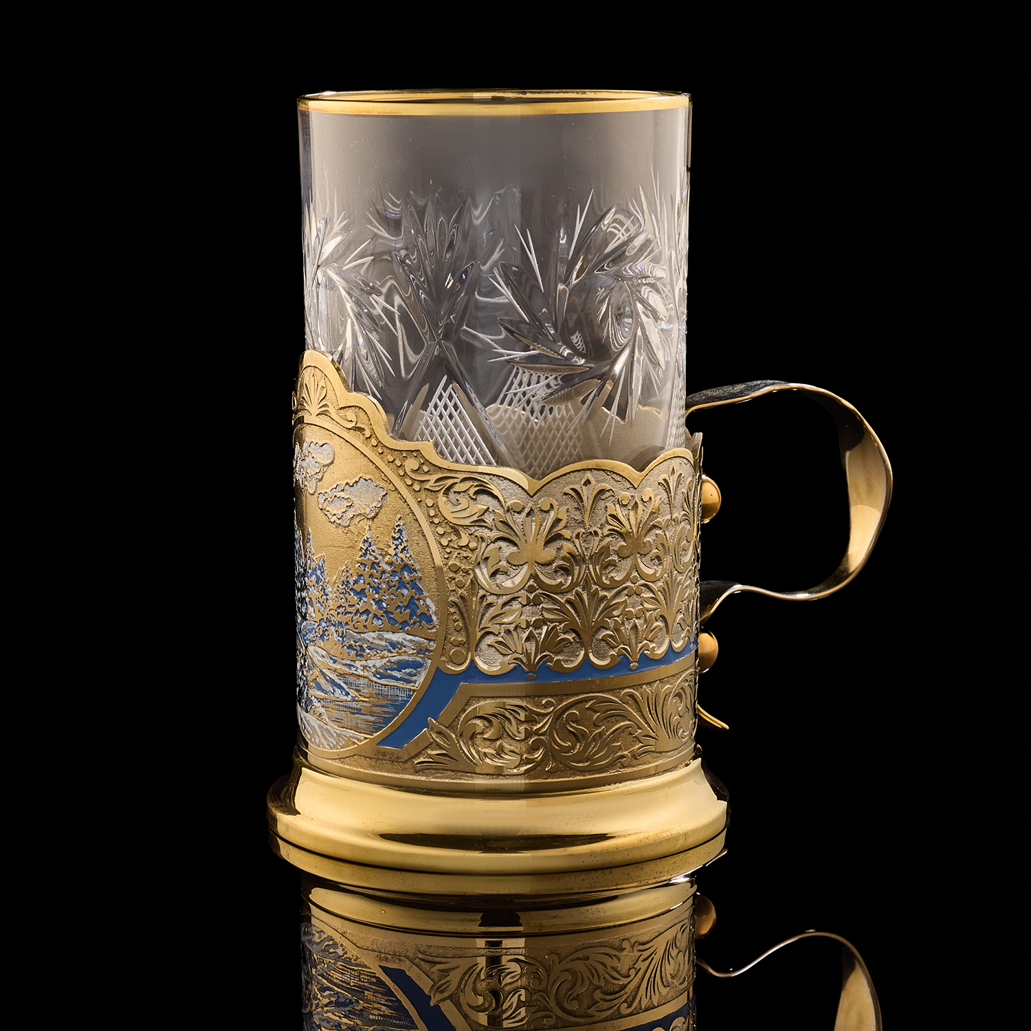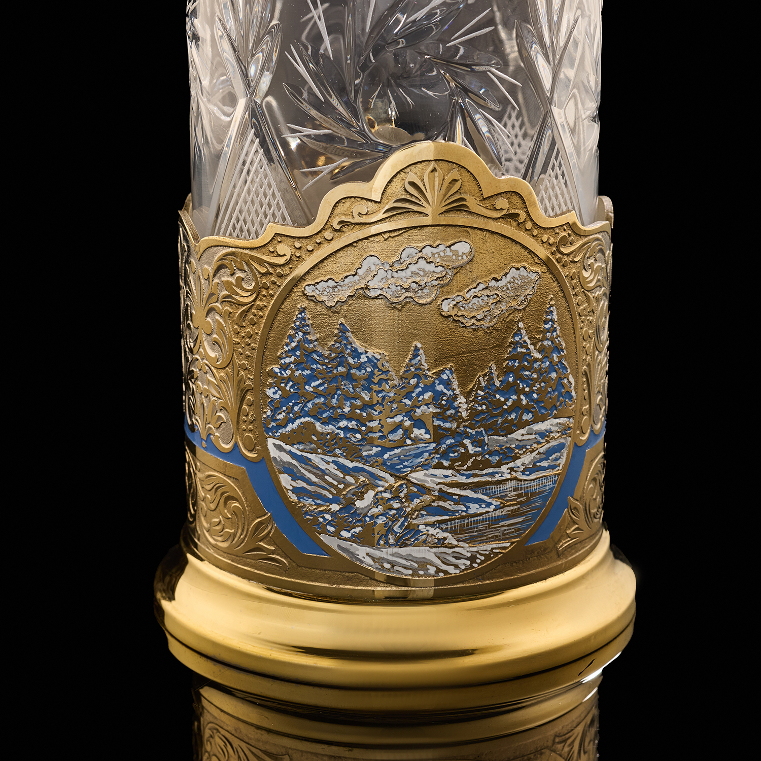Подстаканник "Зима". Златоуст.Материалы: латунь, никель, золото 999,9*, эмаль, хрусталь.