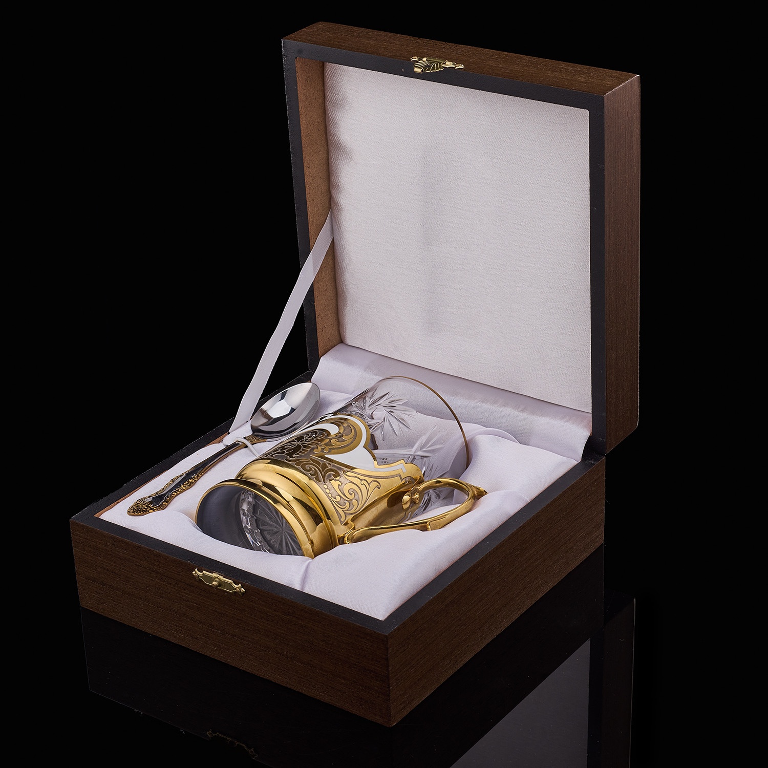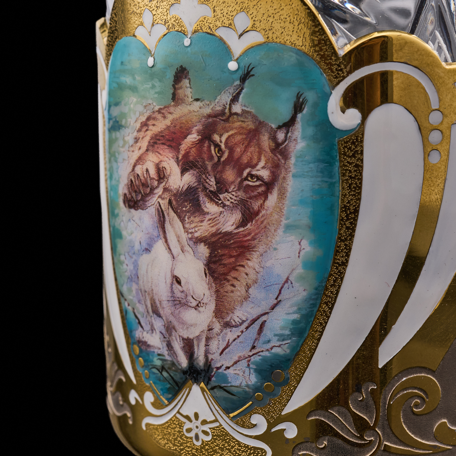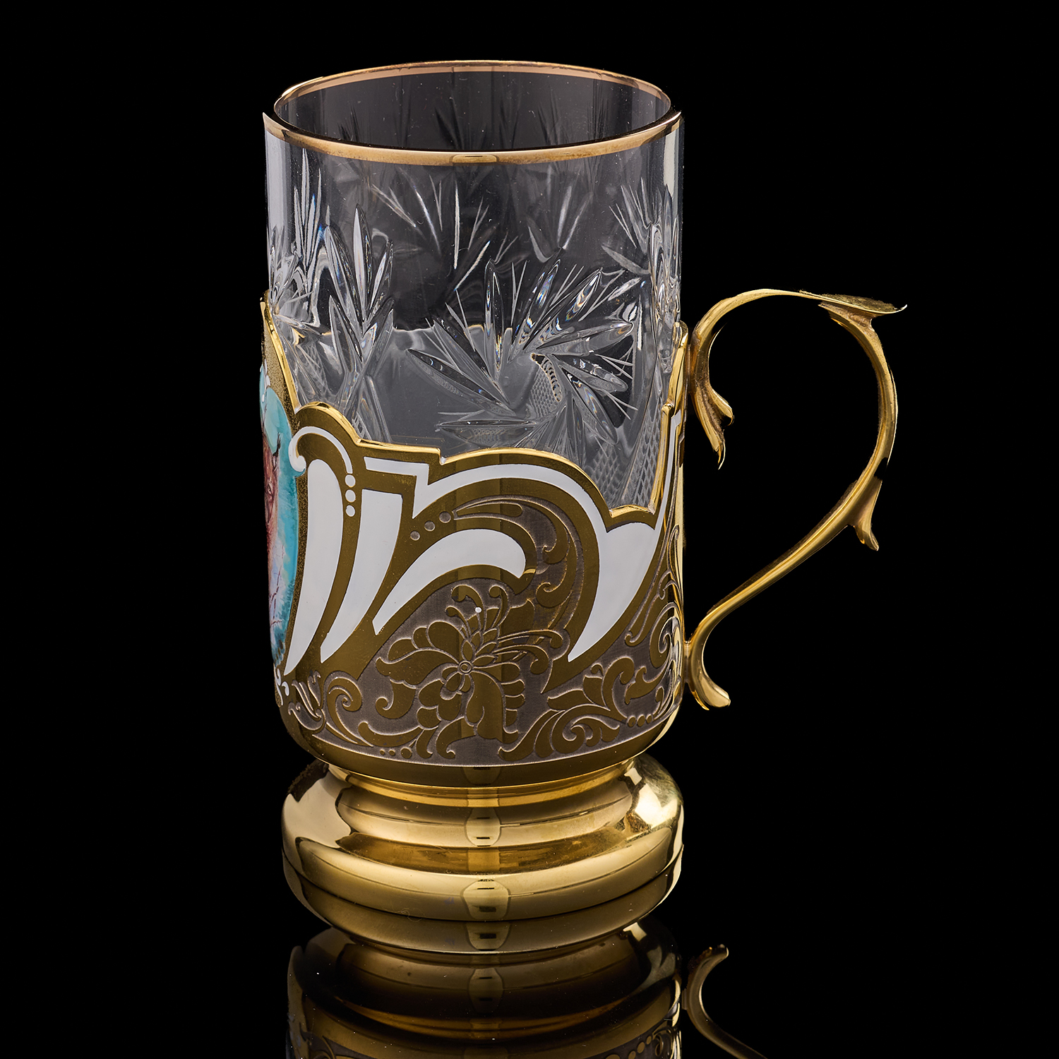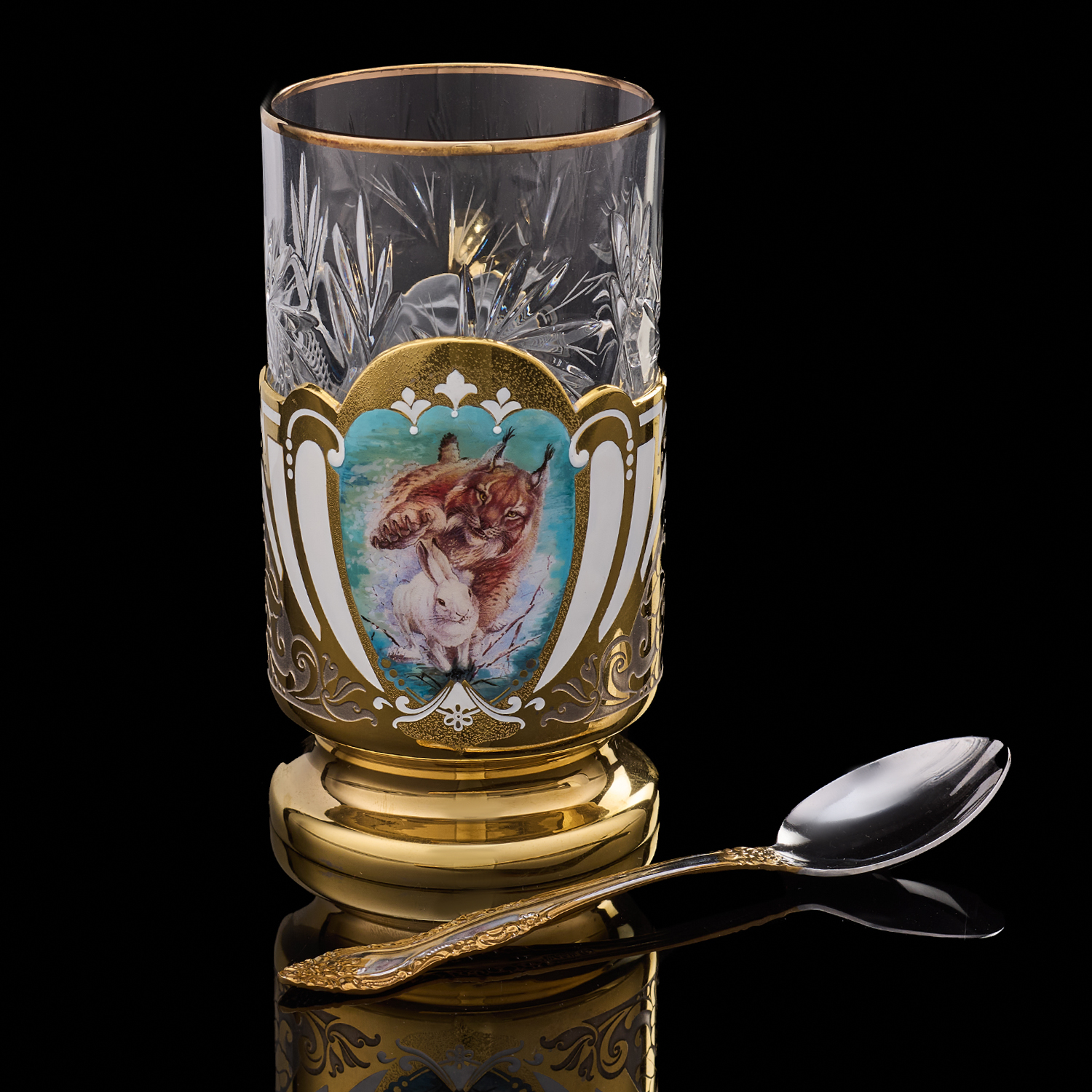 Подстаканник "Рысь". Златоуст.Материалы: латунь, никель, золото 999,9*, эмаль, хрусталь.