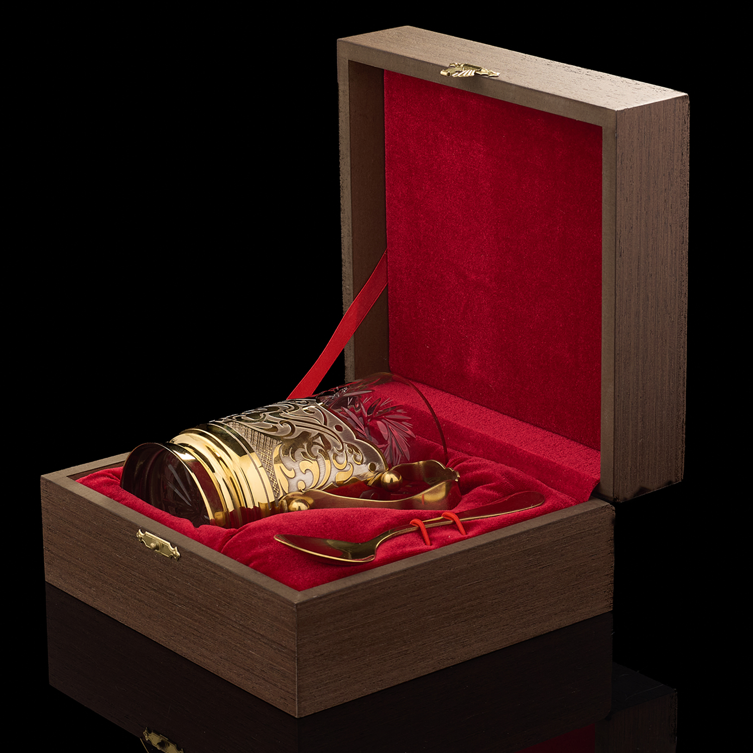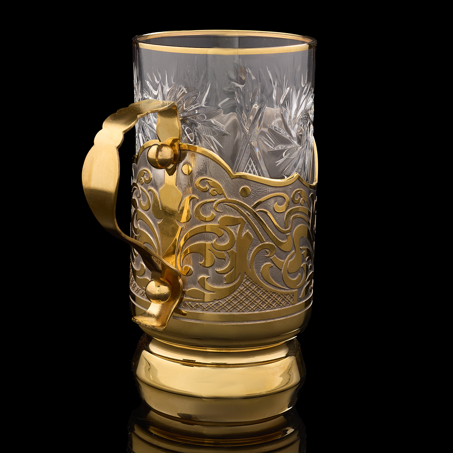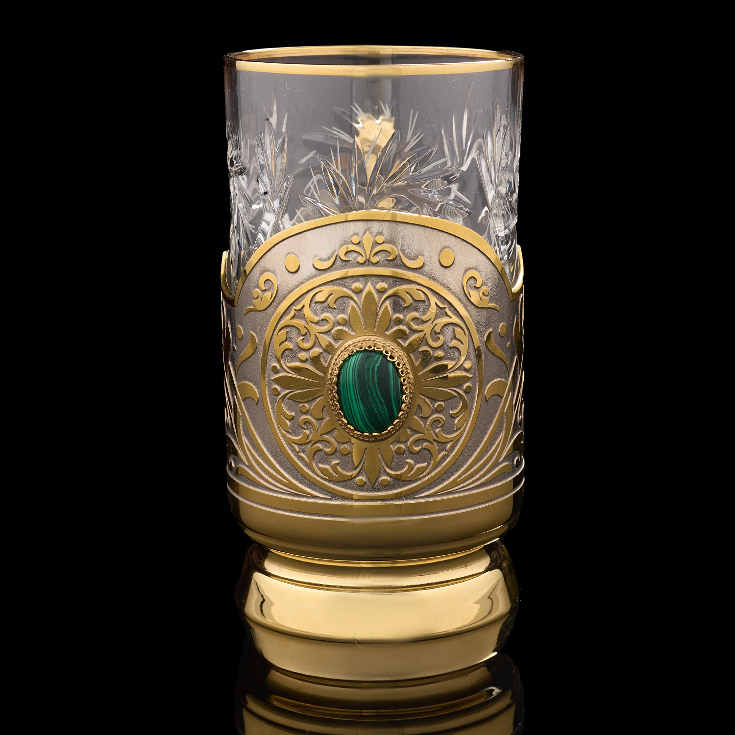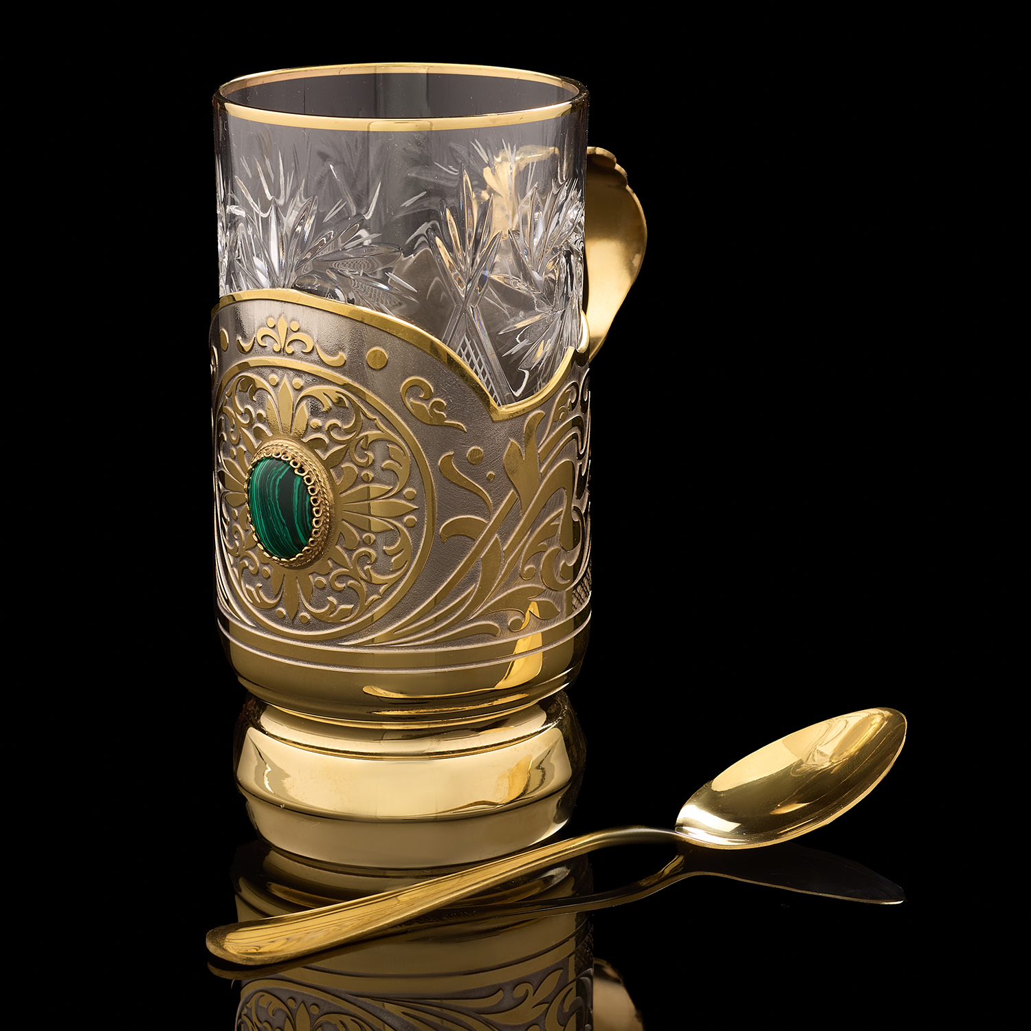 Подстаканник с позолотой и малахитом. Златоуст.Материалы: латунь, никель, золото 999,9*, малахит, хрусталь.