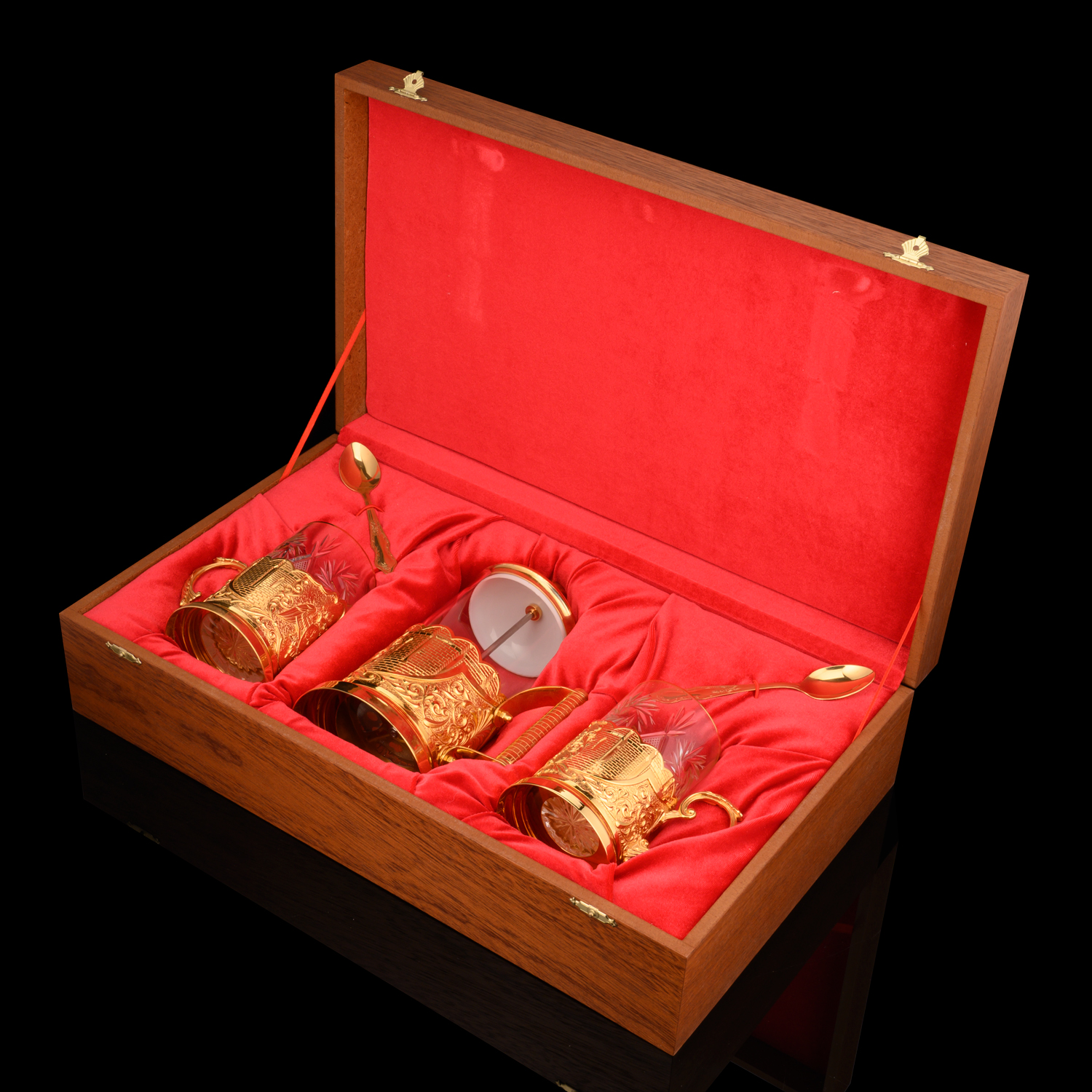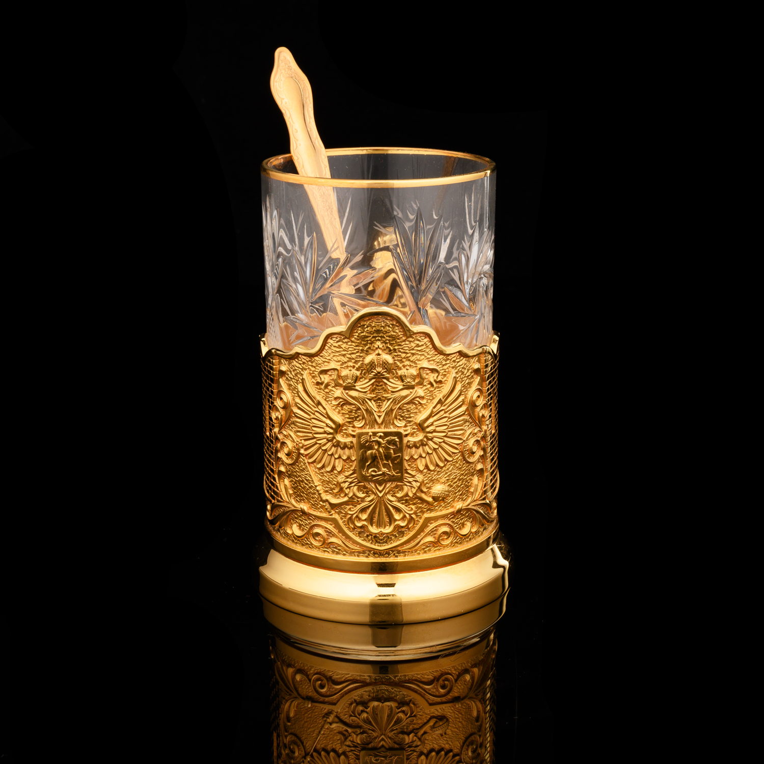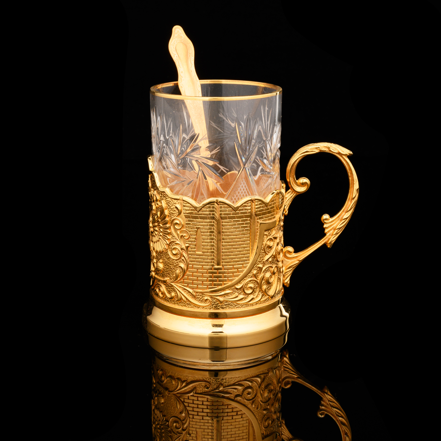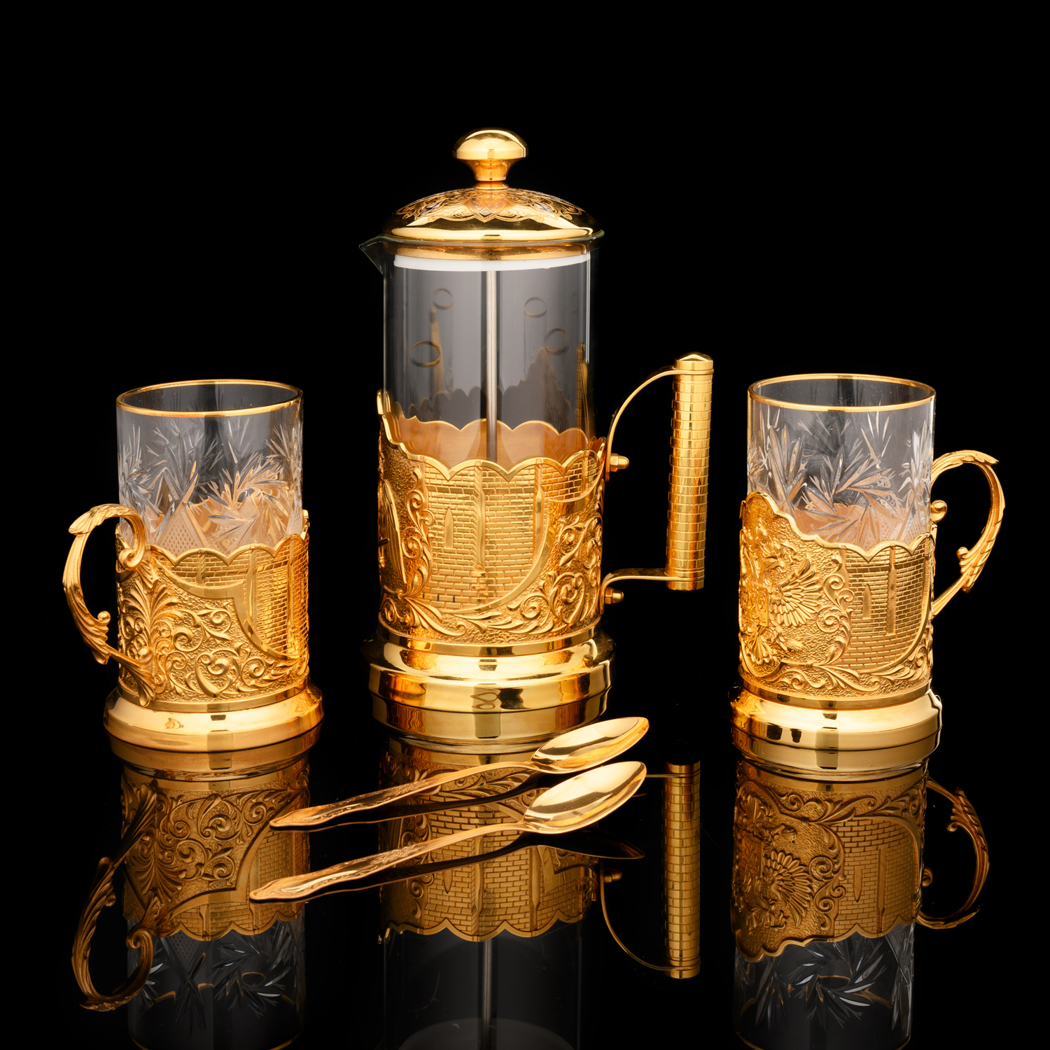 Набор с френч-прессом и подстаканниками "Национальная гвардия РФ". Златоуст.Материалы: латунь, никель, золото 999,9*, стекло.